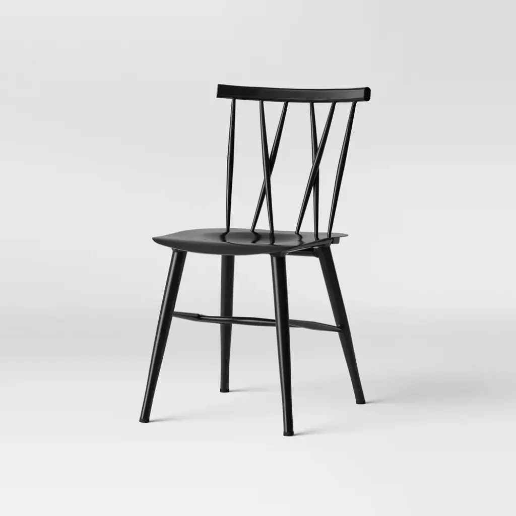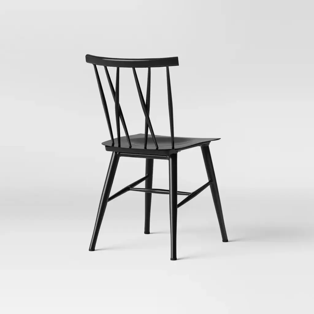 Bring chic, modern style into your kitchen with this Set of 2 Becket Metal X-Back Dining Chairs from Threshold™. This set of metal dining chairs features tapered legs, footrests and stylish X-backs that you'll love. The steel frame keeps them sturdy while adding a touch of industrialism, while the powder-coated finish makes them easy to wipe clean for simple maintenance. Threshold™: Looks like home, feels like you. Back Width: 16 inches Back Height: 14 7/8 inches Seat Width : 16 3/4 inches Seat Depth: 15 3/4 inches Seat Height: 18 1/8 inches Overall Height: 32 7/8 inches Front legs distance: 15 1/2 inches Side legs distance: 15 5/8 inches