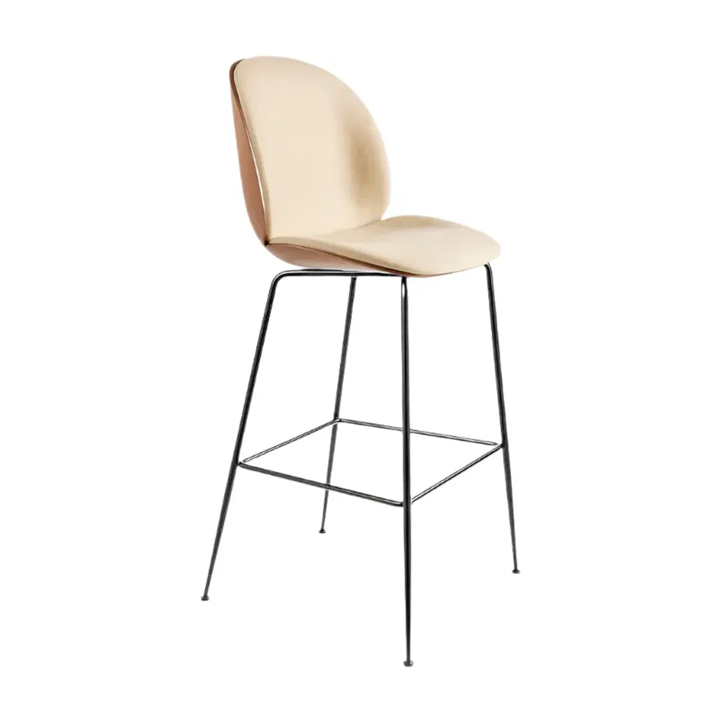 With these bar/counter variations, the eye-catching Beetle Chair from Gubi goes to newly functional heights. Design studio GamFratesi's durable reboot of the classic shell seat is fabricated with injection-molded polypropylene displaying a soft matte texture. In a wide spectrum of hi-style colors and with multiple base options, it's a workable and highly versatile player in both business and relaxed settings.