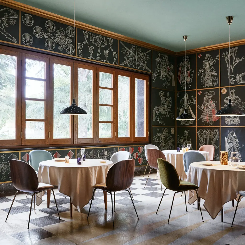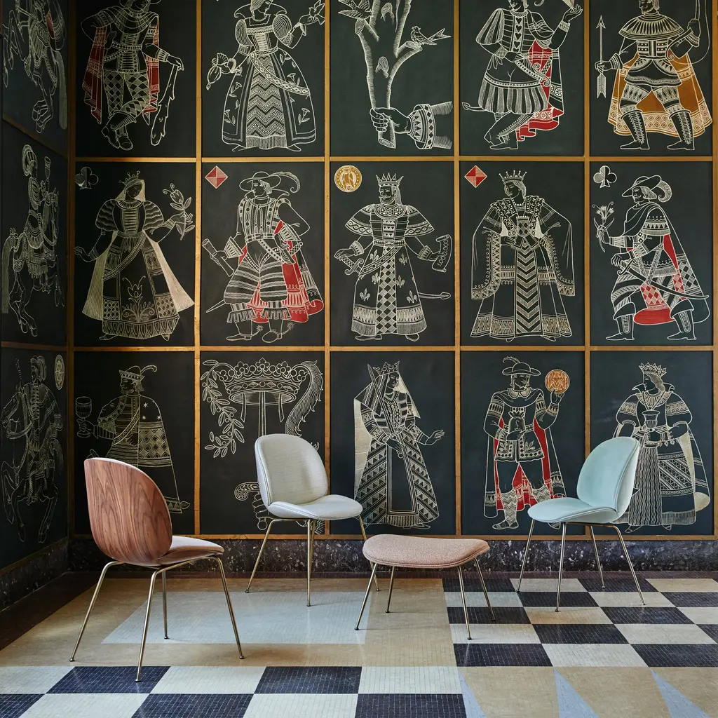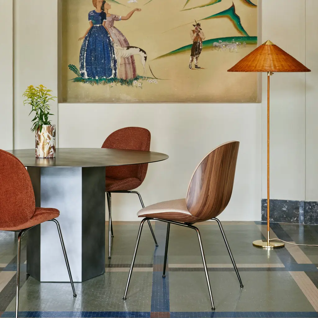 With a choice of oak or walnut 3D veneer for the molded shell as well as a conic base in a range of metal treatments, front upholstery adds the final personal touch to create a one-of-a-kind version of Gubi's dining chair. Suggested by its 4-legged namesake, design studio GamFratesi offers a 21st century take on the iconic Scandinavian ergonomic seating with slimly attenuated legs. Choose from premium fabric or soft leather to complement the base in black, brass or blackened chrome finish.