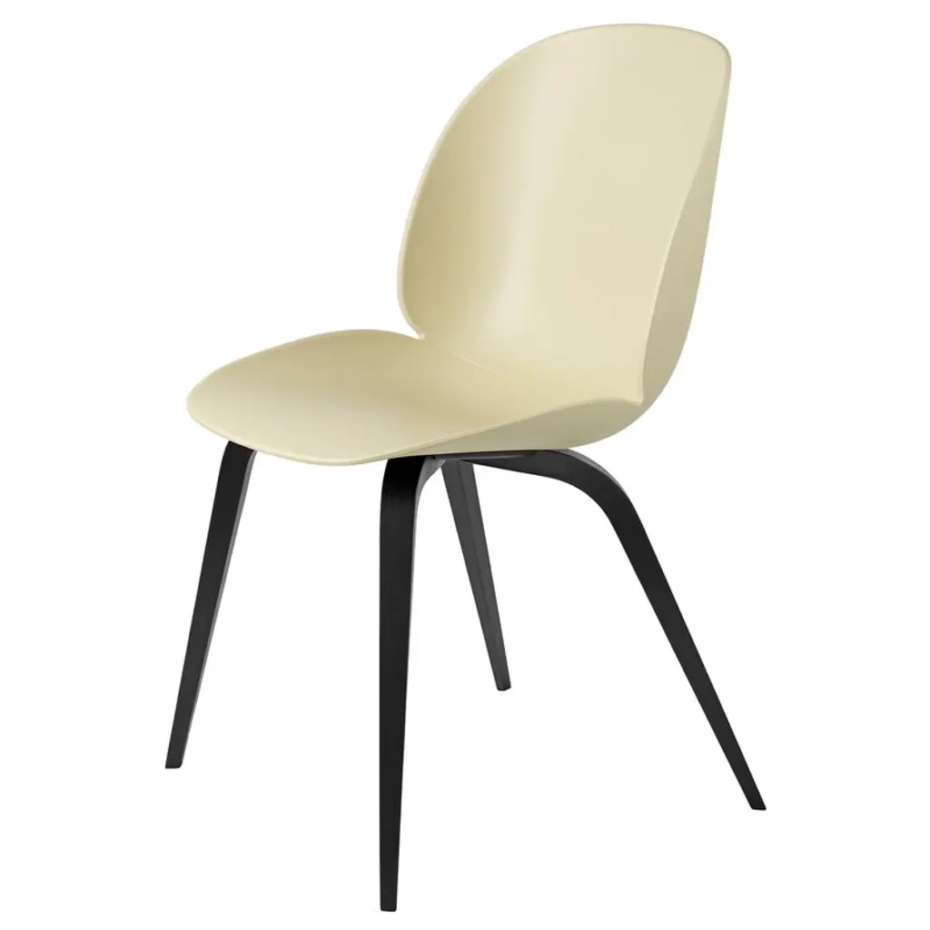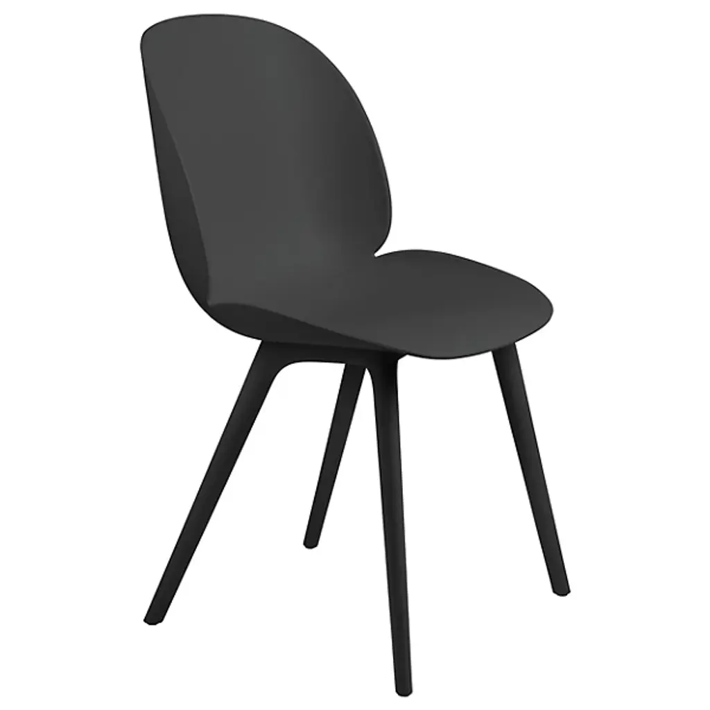 Bring smooth modern character to interiors with the open lines of the Beetle Dining Chair - Plastic Base from Gubi. Four flared legs of durable, recyclable plastic offer unparalleled elegance, set atop dense plastic glides to move without damaging the floors. A GamFratesi design inspired by the subtle segmented shapes of insects, it offers both class and comfort with a charming, vibrant form. The swooping design adds visual balance accompanied by enduring function and easy recyclability.