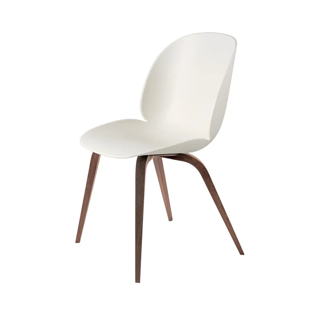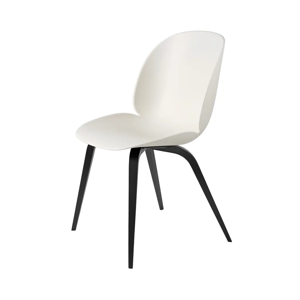 Gubi's wood base version provides a refined complement to Beetle Chair's polypropylene seat with its subtle matte texture. Design duo GamFratesi's take on an iconic molded chair takes both its name and characteristic shape from the little bugger. The resulting ergonomic contours exude comfort for hours of contented sitting at the table or desk.
