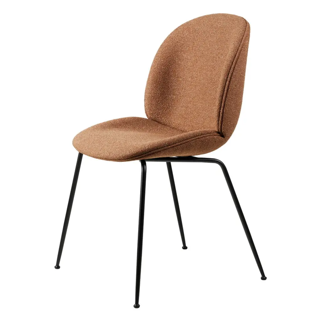 Make an inspired and stately addition to interior spaces with the Beetle Upholstered Dining Chair - Conic Base from Gubi. A stylish salute to designers GamFratesi’s inspiration from the insect world, it lends a soft, comfortable persona to interiors, adding sustainable and recyclable construction elements to a timeless modern style. The slim splayed base of four legs brings to mind a beetle’s legs, while the comfortable, curving back offers sustainable service with simple recycling.
