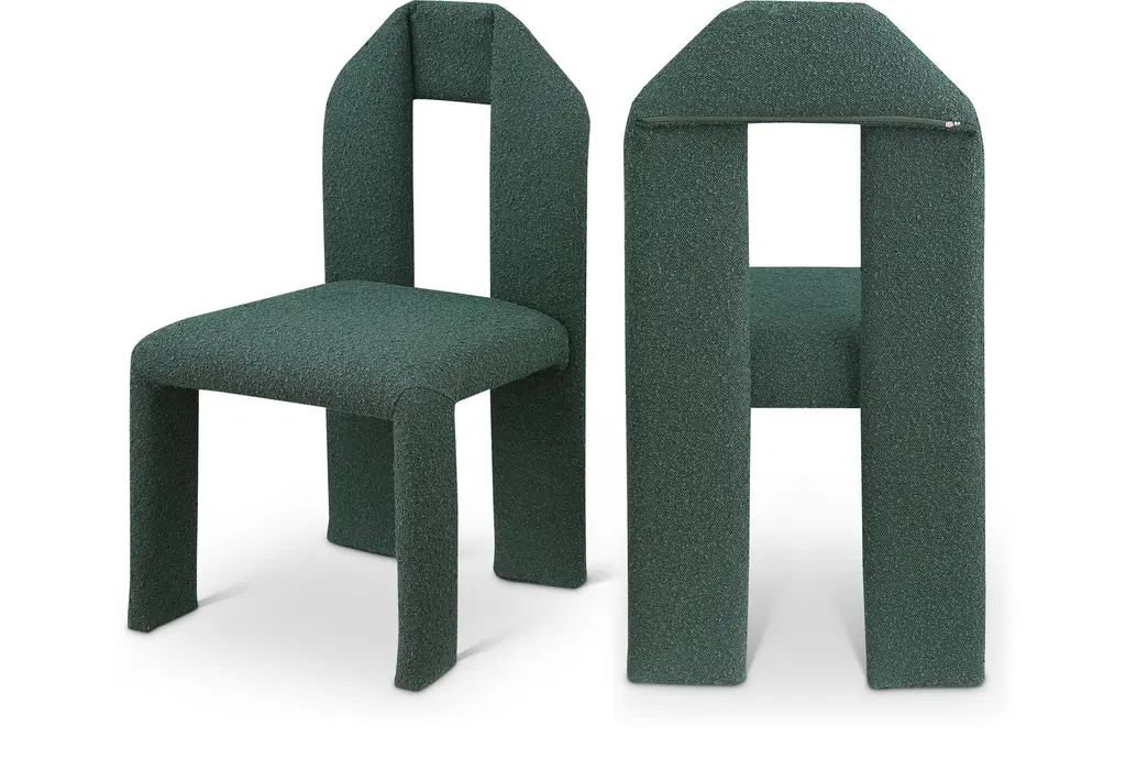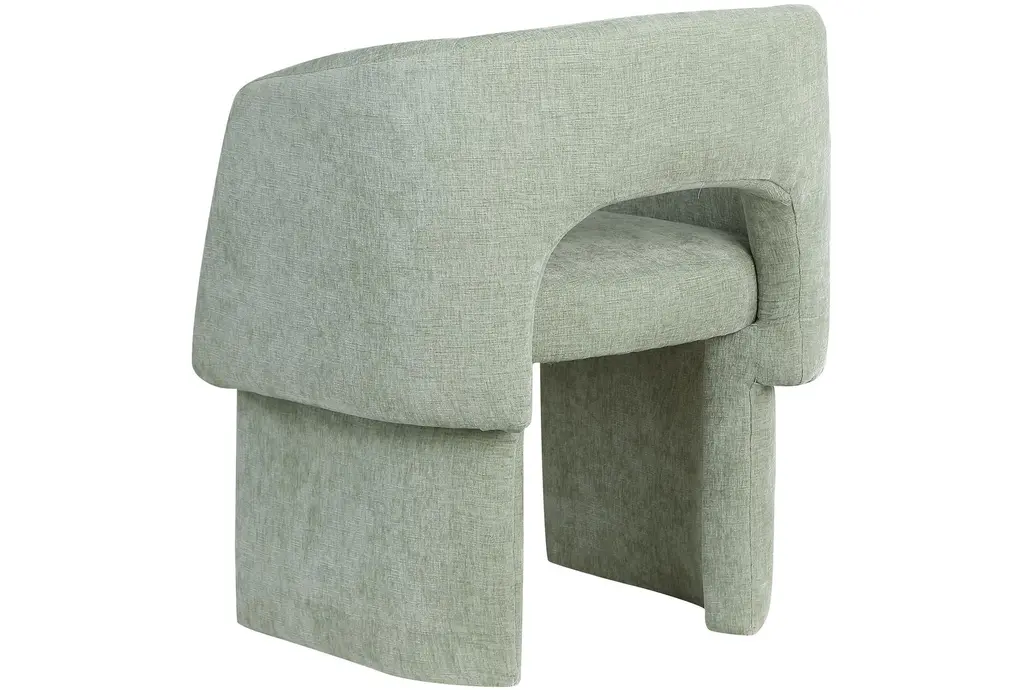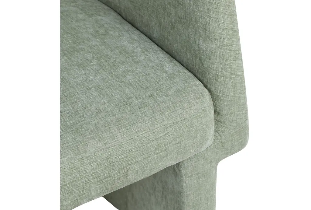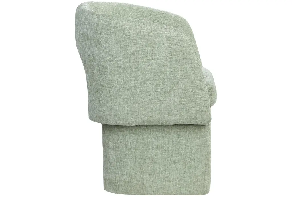 The Bellet Mint Chenille Upholstered Dining Chair brings a touch of modern style to your dining room or kitchen. Its swoop arms and recessed armrests offer both comfort and support, while the mint color adds a soft, inviting feel to your space. Constructed with chenille fabric, eucalyptus wood, plywood, iron, and foam, this chair combines durability with a contemporary look.