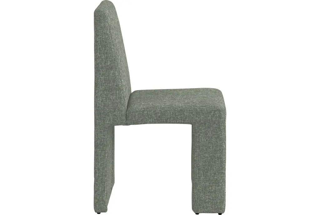 Bensen Green Linen Fabric Textured Upholstered Dining Chair Set Of 2 | Armless