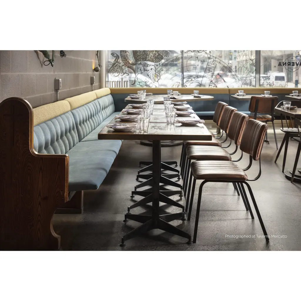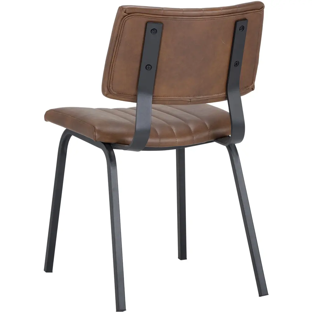 This versatile dining chair will seat guests in comfort and style. The industrial look is completed with a black steel frame and a channel tufted seat. Available in bravo cognac faux leather. Handle With Care: This design has been crafted with faux leather. Faux leather is manufactured to reflect the natural characteristics of leather as such, colour variations, markings wrinkles, grooves, and light scratches are appreciated characteristics. No two pieces will be alike. Visit our Product Care page for more information on how to ensure the lasting beauty of this piece.