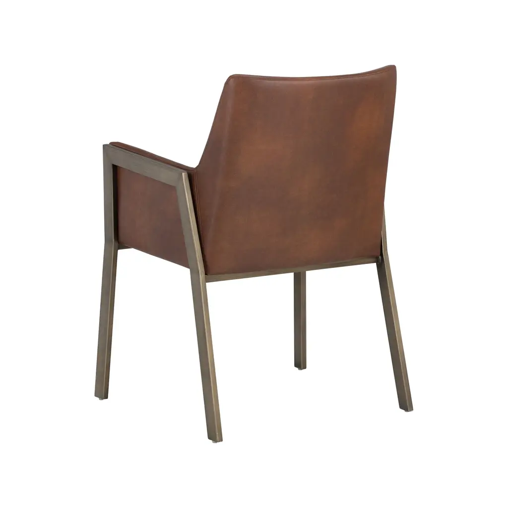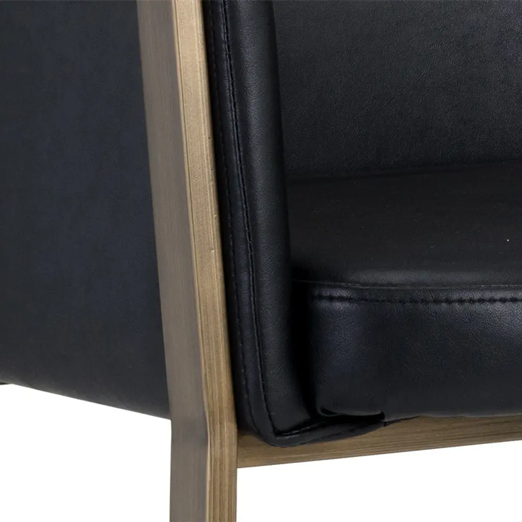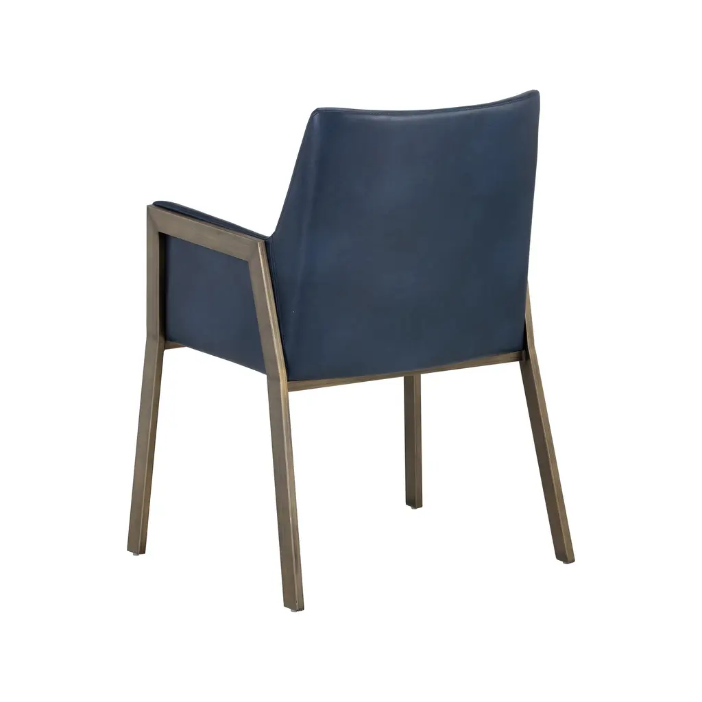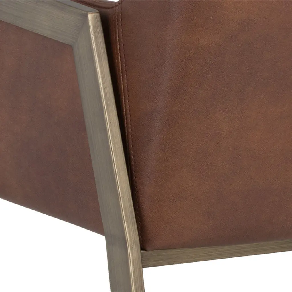 Immerse yourself in total luxury with the Bernadette Dining Armchair from Sunpan. The shapely design and exposed antique brass frame exude elegance and taste. Upholstered in bravo admiral faux leather, this chair offers both style and durability. Each piece is unique, with natural characteristics of leather adding to its exclusive charm. Highlights
