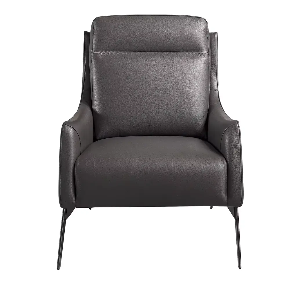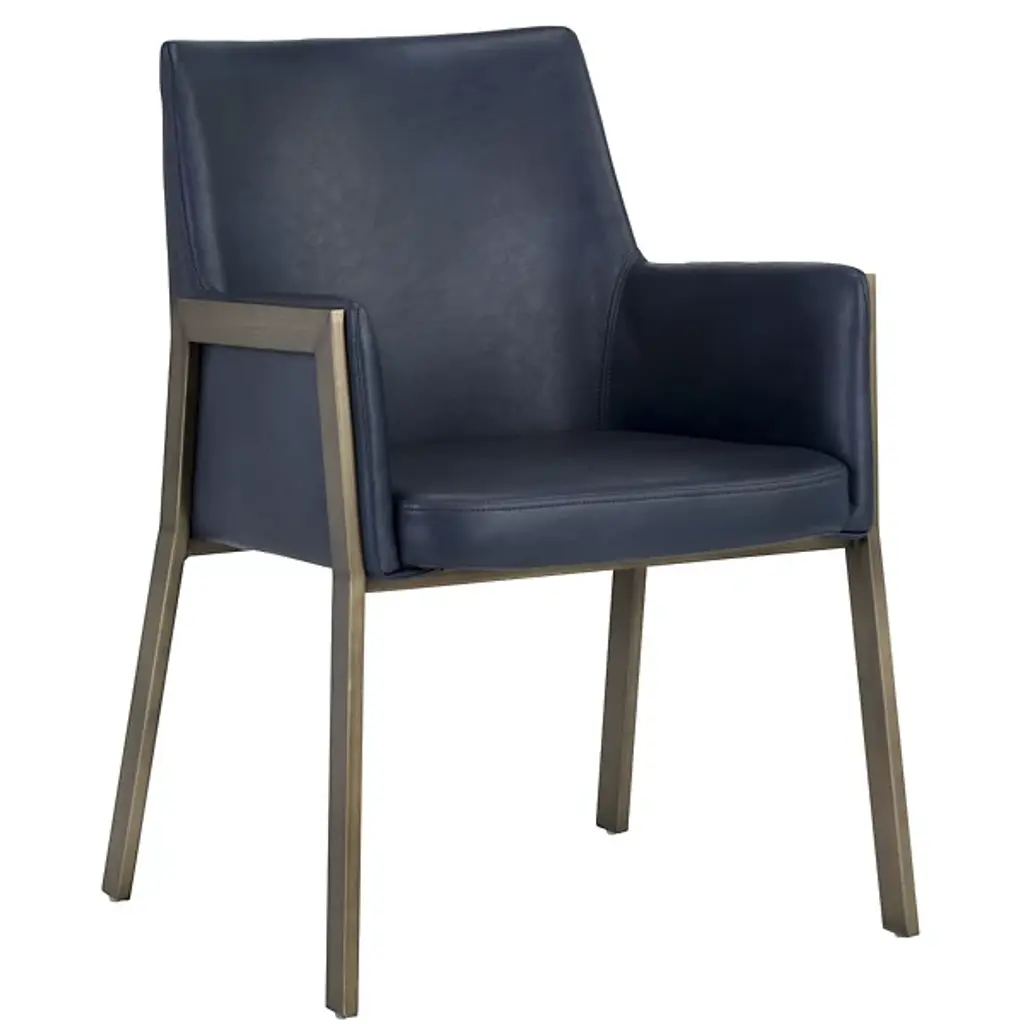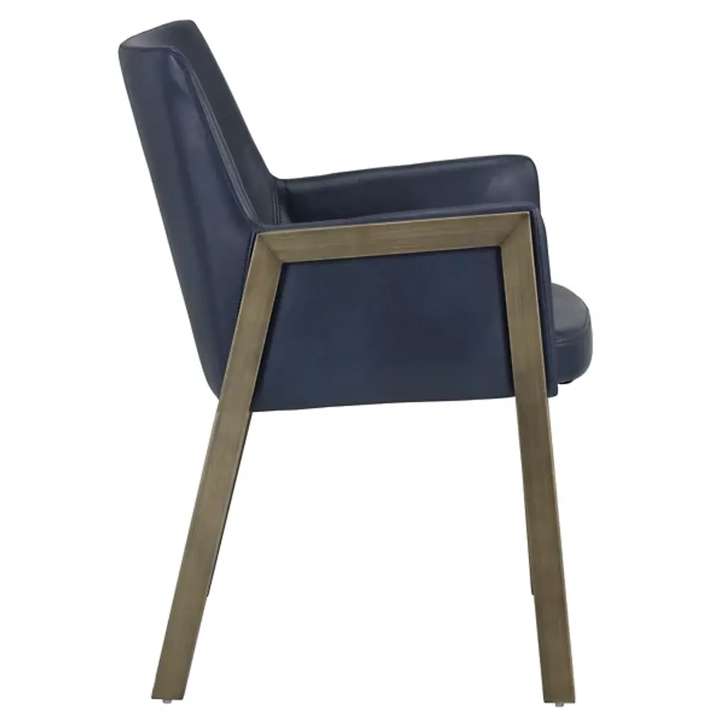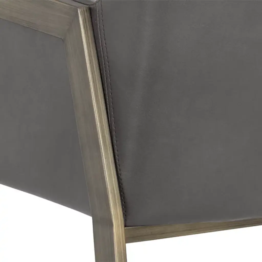 Presented by Sunpan, the Bernadette Dining Armchair showcases a shapely, squared-off design. Its standout feature is the exposed metallic frame, which not only provides structural support but also adds a striking contrast of texture and color to the chair’s upholstery. The soft cushioning of the armchair is enveloped in artisan-crafted leather, treated to exude the same organic charm as naturally derived leather. This treatment results in a unique piece with various scratches and color variations, making each chair one of a kind.
