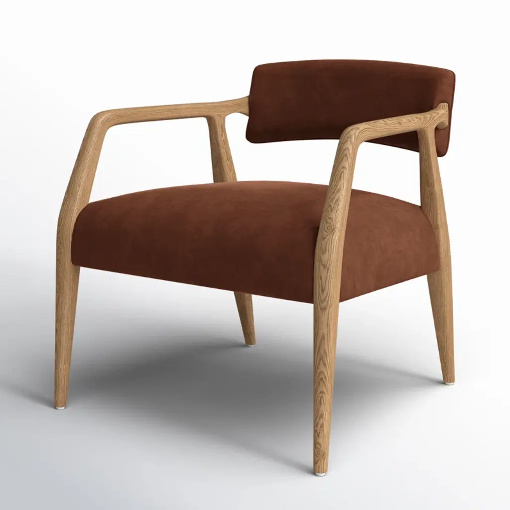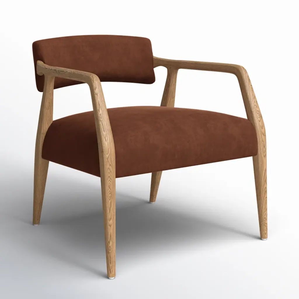 This armchair draws on a pared-down, minimalist silhouette and open design to give your space a versatile seat with nods to mid-century design. Crafted with a solid wood frame, this chair features square arms and dowel legs that widen near the center to show off its warm wood grains. The seat and back are upholstered in foam-filled 100% cotton, with a muted reddish-brown tone that complements the wood tone. No assembly is required.