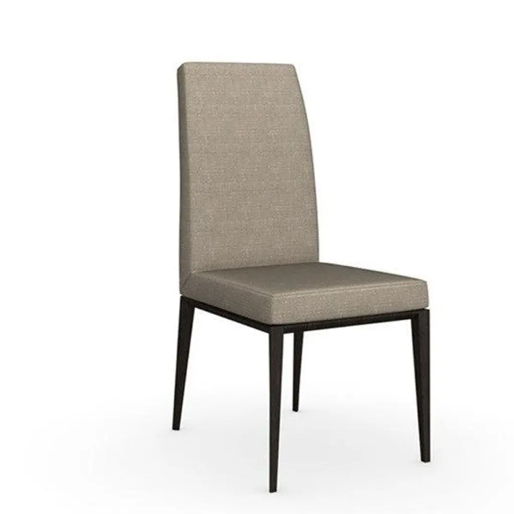 The Bess Dining Chair is highly comfortable thanks to its high backrest and upholstered seat that is practical and easy to clean, this is a classic chair suitable for dining rooms. The triangular wooden legs and cross bars give Bess an elegant lightweight look.
