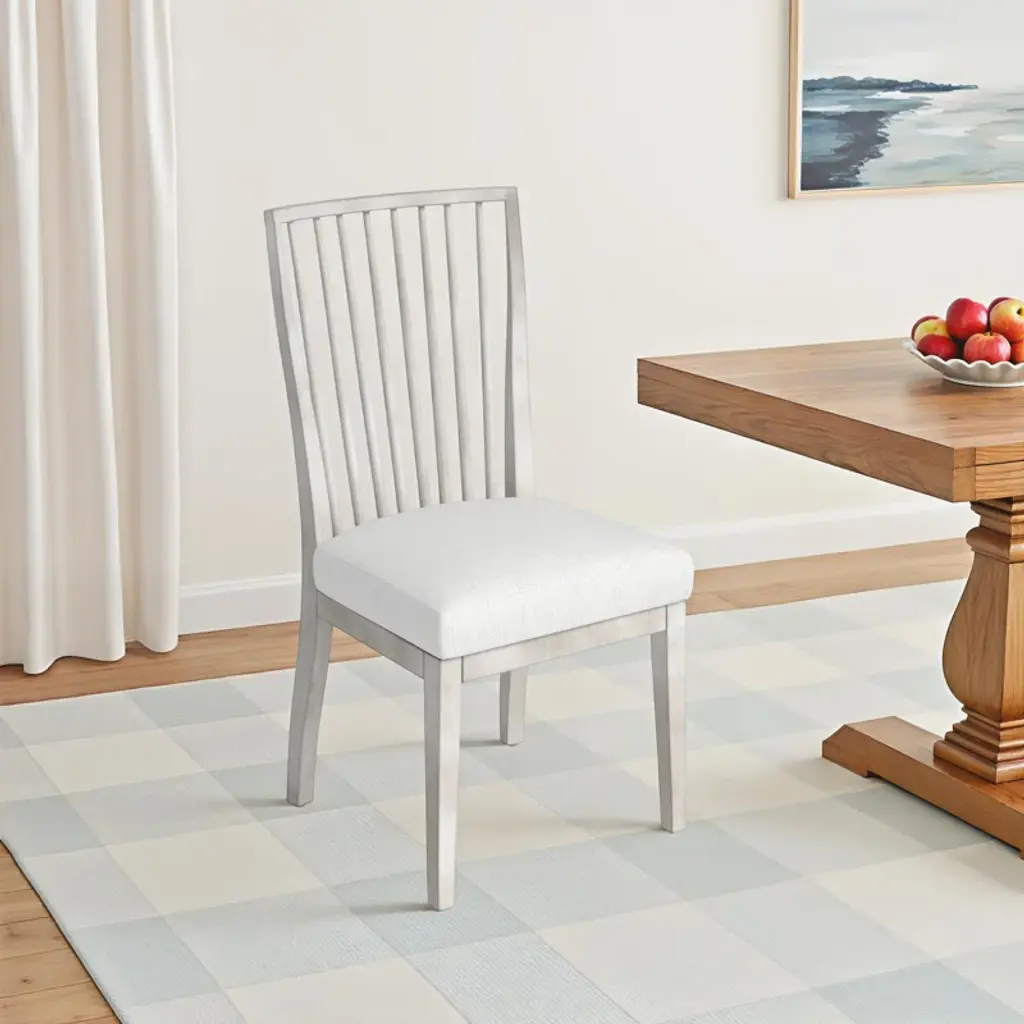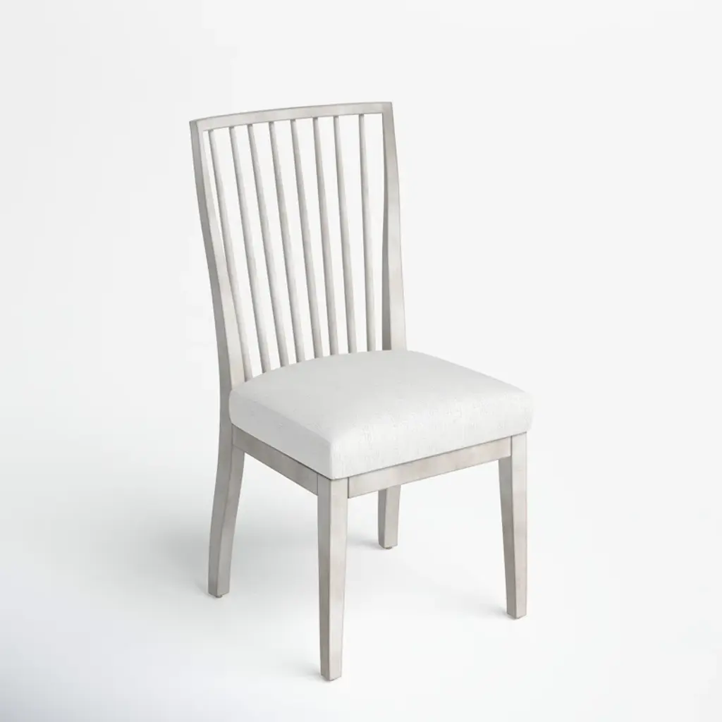 Inspired and inviting, the side chair features a clean-lined body, a contemporary slat back, and an upholstered seat, creating a modern seating option