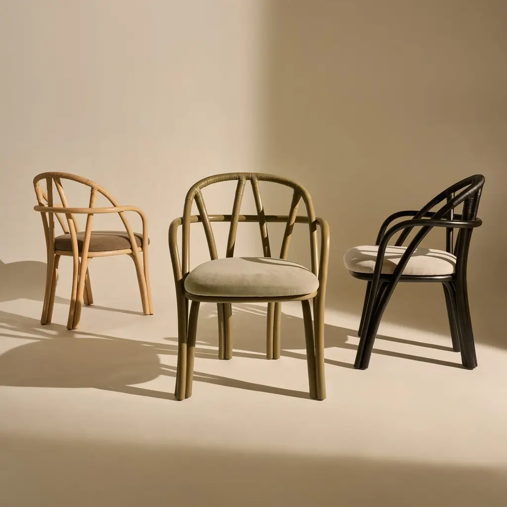 Graceful and inviting, the Bistra Dining Armchair from Gubi blends sculptural artistry with everyday comfort. Its softly curved wooden frame wraps around a plush upholstered seat, creating tree-like contours that invite lingering dinners and relaxed conversations. Inspired by mid-century craftsmanship with a contemporary twist, the chair’s elegant silhouette and refined details make it a versatile statement piece that elevates any dining room or seating area. Highlights