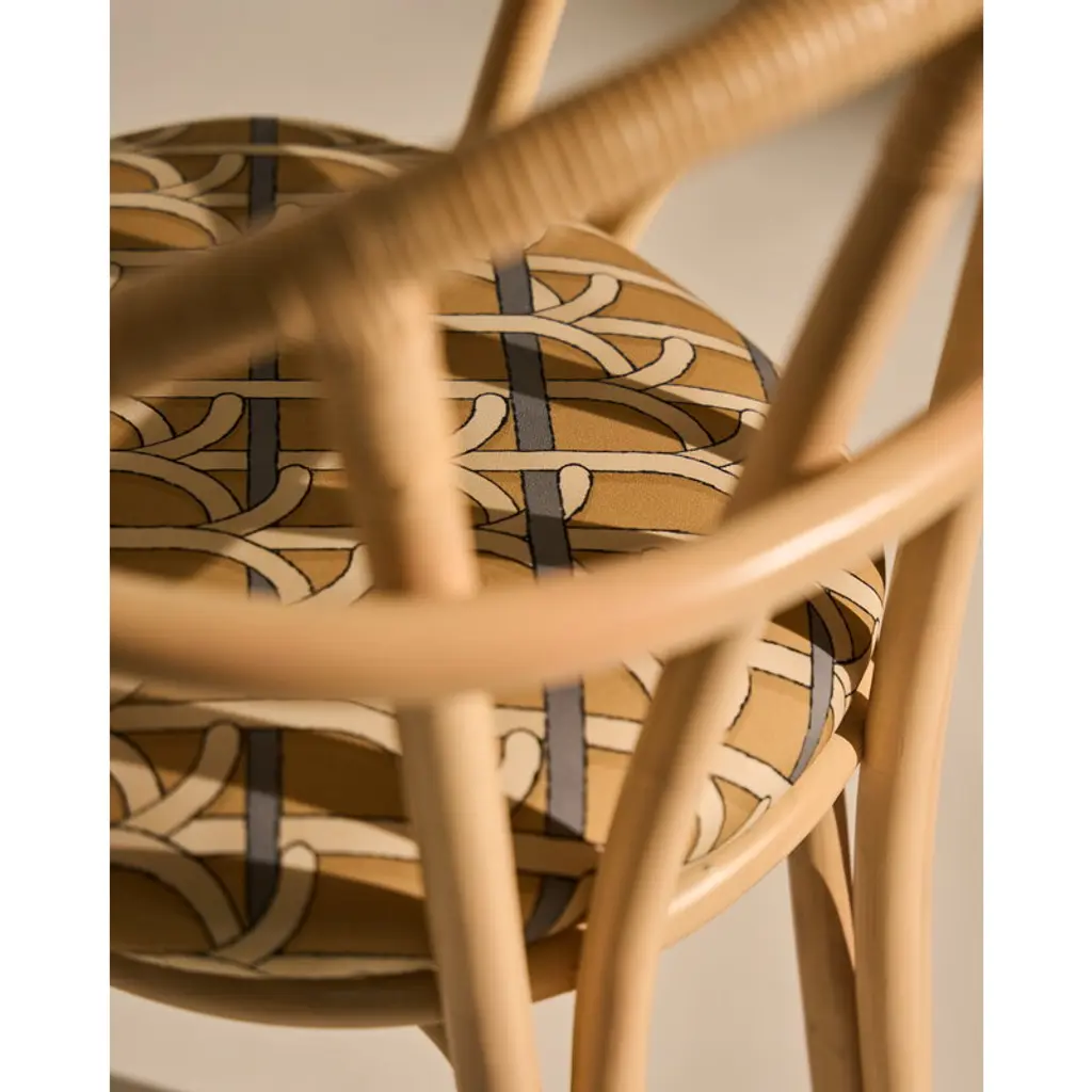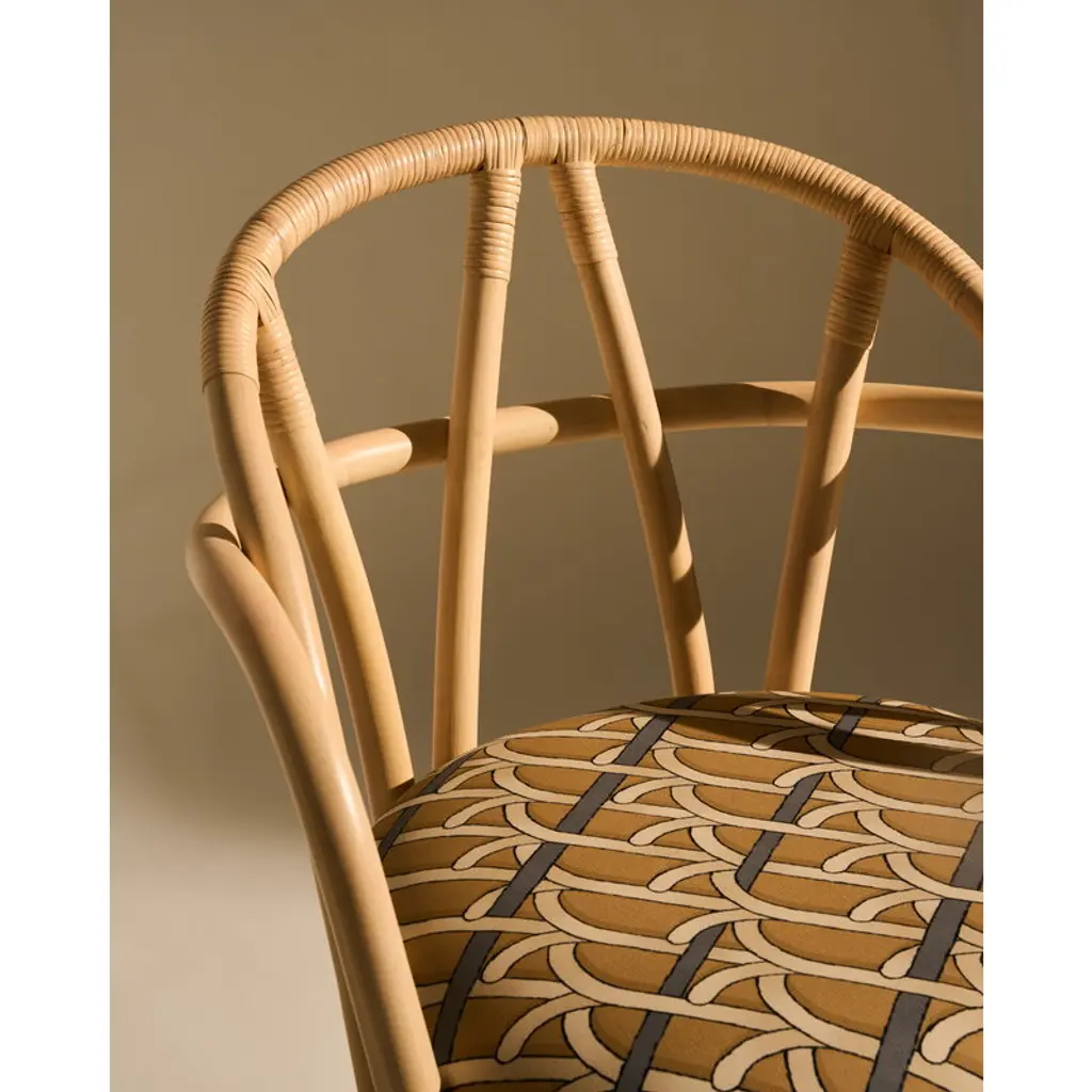 Bistra Dining Armchair, Natural Lacquered Rattan - Reales Pattern 002