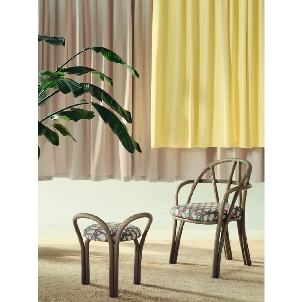 GUBI’s Bistra chair, created by Milan-based AMDL CIRCLE led by Michele De Lucchi, is a contemporary interpretation of the classic rattan bistro chair. Designed for both dining and meeting tables, the dining armchair is shaped through steam bending, giving it its flowing curves, while the backrest features a traditional rattan weave. The removable seat cushion is upholstered in a high-quality cotton fabric with a hand-drawn pattern inspired by the foliage in Leonardo da Vinci’s Sala delle Asse fresco. The shapes of the Bistra collection echo plants sprouting from the ground, growing from a simple stem into branching, interwoven structures. The rattan chairs were born out of AMDL CIRCLE’s exploration of rattan’s essence – one of the fastest-growing plants in the world, rattan is remarkably strong, durable, and resilient, yet at the same time light and highly flexible. In interiors, Bistra chairs bring charm and character whether placed individually or in a group.