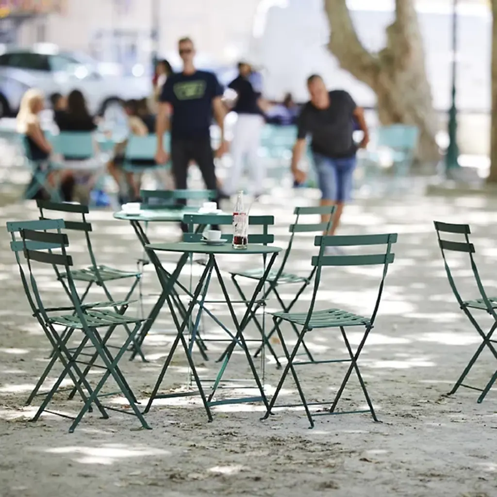 The chair that started it all. The Fermob Bistro Folding Chair, Set of 2 includes a pair of cafe chairs originally designed in Europe in 1889. Foldable and lightweight, they became particularly popular amongst lemonade sellers and other mobile food vendors. This version is made entirely out of galvanized steel, including the comfortably curved seat and back slats.