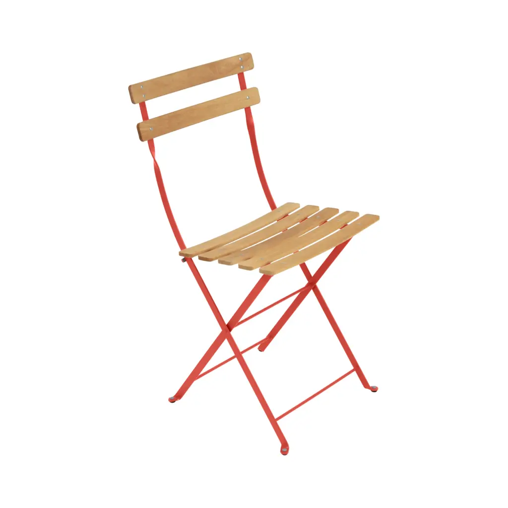 From the first charming café terraces to now, the Fermob Bistro Natural Chair (Covered Use ONLY) - Set of 2 brings its timeless charm to your kitchen or patio. The iconic chair showcases a steel frame with natural beech curved slats on the backrest and seat. Foldable for easy storage. Features