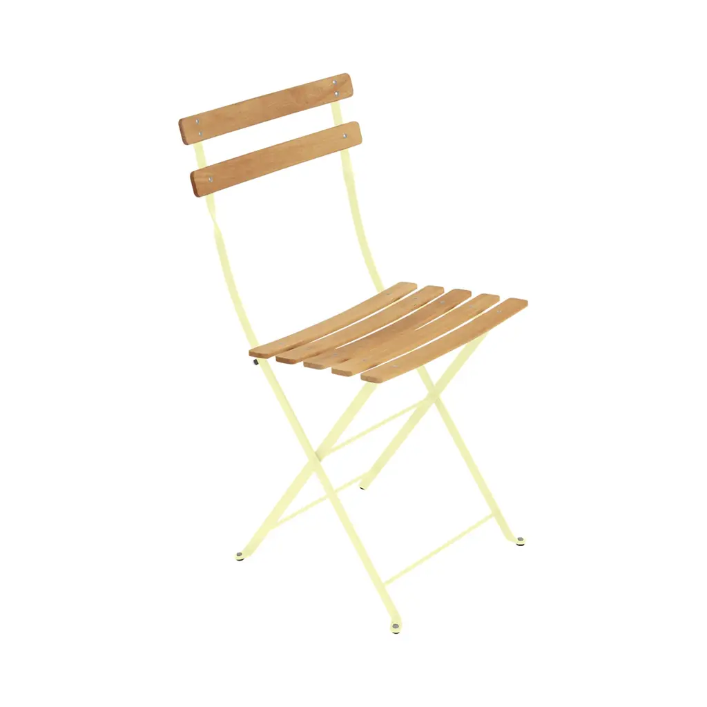 From the first charming café terraces to now, the Fermob Bistro Natural Chair (Covered Use ONLY) - Set of 2 brings its timeless charm to your kitchen or patio. The iconic chair showcases a steel frame with natural beech curved slats on the backrest and seat. Foldable for easy storage. Features