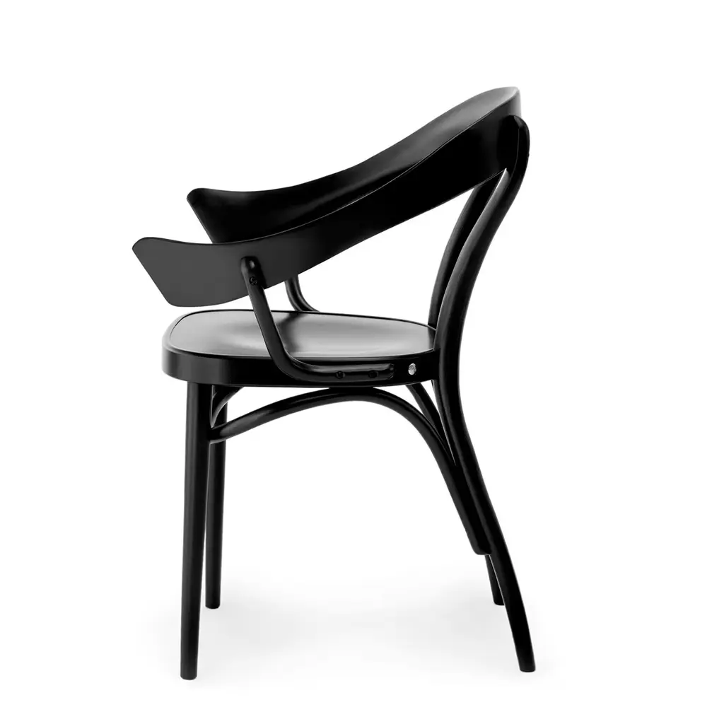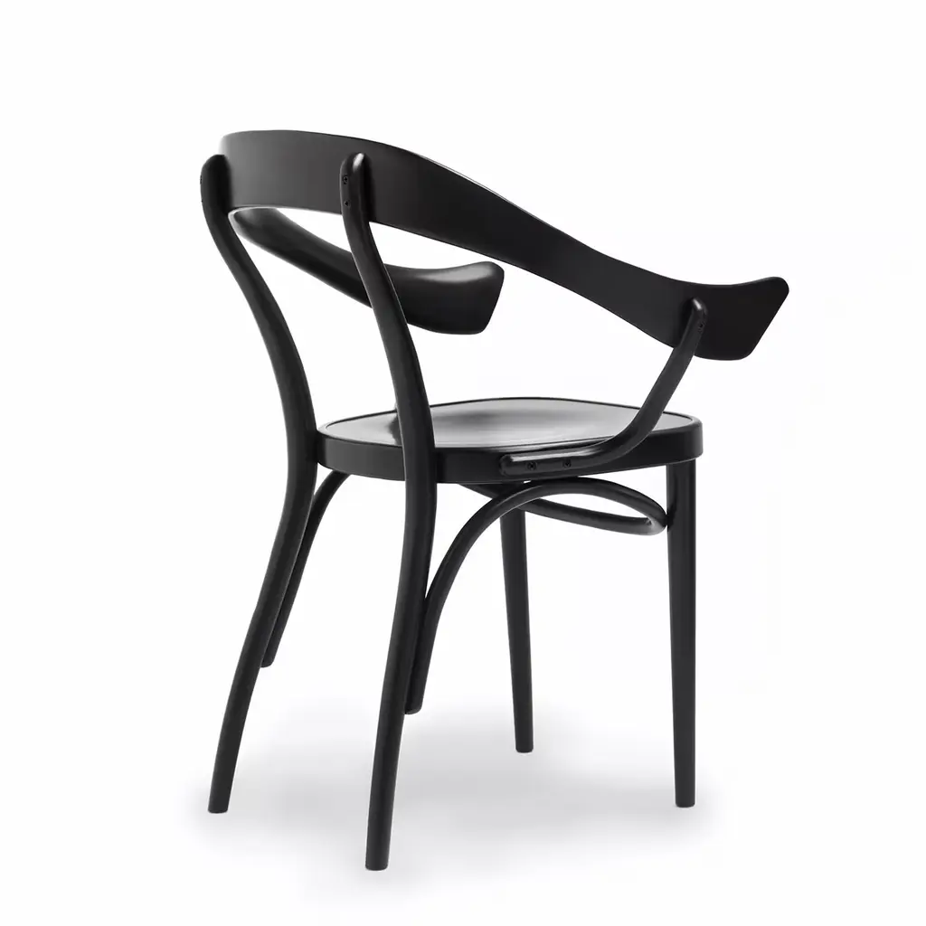 This exquisite and versatile armchair was designed by Nigel Coates in 2016 and can be combined with the others by the British designer for a mixed-and-matched look around a contemporary table. Reminiscent of the traditional Thonet pieces, this is a comfortable and sophisticated chair whose ergonomic lines become almost an anthropomorphic sculpture, with a curved backrest that extends forward into the shoulderblade-like armrests. The refined proportions of this chair are rendered in steamed-bent beechwood, a traditional feature of this brand's furniture.