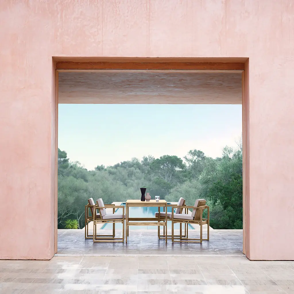With its beautiful teak wood, the BK10 Dining Chair is suitable for both indoor and outdoor use. For Bodil Kjaer, designing has always involved a dialogue with architecture, and her work has always been created for humans. She has worked to create harmony between design and architecture - an ambition that, in 1959, resulted in an elegant outdoor furniture series characterized by such high functional and aesthetic qualities, that it was also suitable for indoor use. The furniture has a clear identity, an evident simplicity, and is based on high-quality materials and superior craftsmanship. NOTE: Cushion Sold Separately. View BK10 Cushion