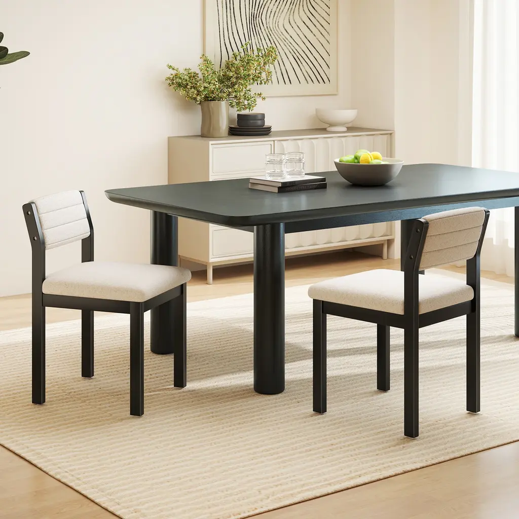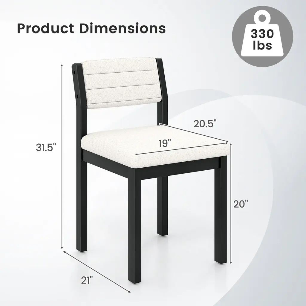 SpecificationsKey Features● Deluxe Sherpa Upholstery: The seat and backrest of these dining chairs are wrapped in soft sherpa fleece, renowned for its luxurious softness and exceptional comfort. The sherpa fleece not only adds a touch of elegance to your dining area but also allows you to enjoy long meals without discomfort.● Ergonomic Backrest: The armless kitchen chairs are equipped with slanted backrests that conform to the natural alignment of your spine, providing unparalleled lumbar support and helping enhance your posture while sitting.● Spacious Seating: Unlike traditional dining chairs with narrow seats, our modern dining chairs boast a wide 20 x 20.5" seat. The generous seating area, coupled with an armless design, not only enhances freedom of movement but also facilitates easy sitting and standing.● Sturdy Wood Construction: Crafted with a stable frame supported by wooden legs, the upholstered dinette chairs offer optimal sturdiness. With a maximum weight capacity of 330 lbs, these chairs are built to last. Plus, the addition of anti-slip pads ensures that your floors remain scratch-free.● Contemporary Elegance: Boasting a contemporary design, the accent side chairs effortlessly blend in with any interior setting, such as your living room, kitchen, or restaurant. The dimensions of each dining room chair are 21" x 19" x 31.5"(L x W x H).