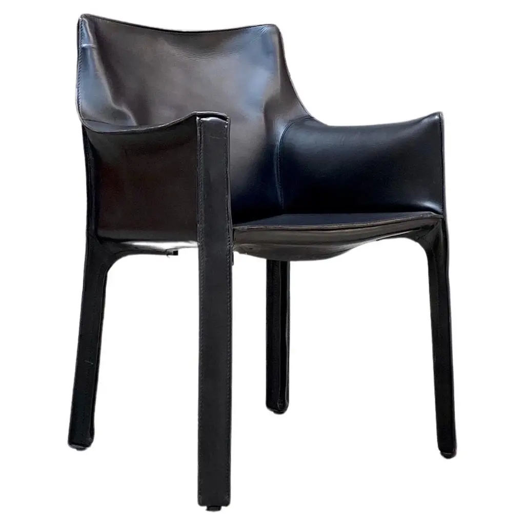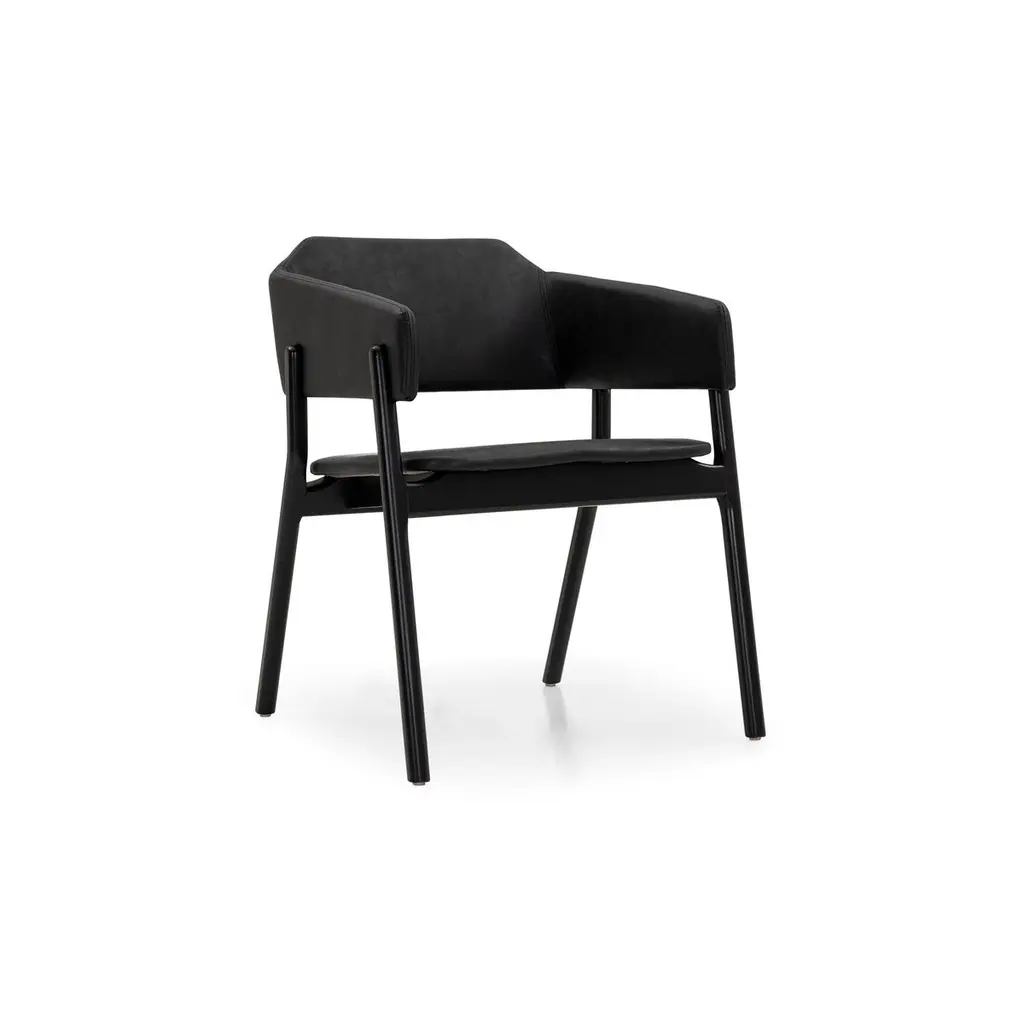 Black Faux Leather Armchair With Black Matte Wood Frame, Stuzi Collection