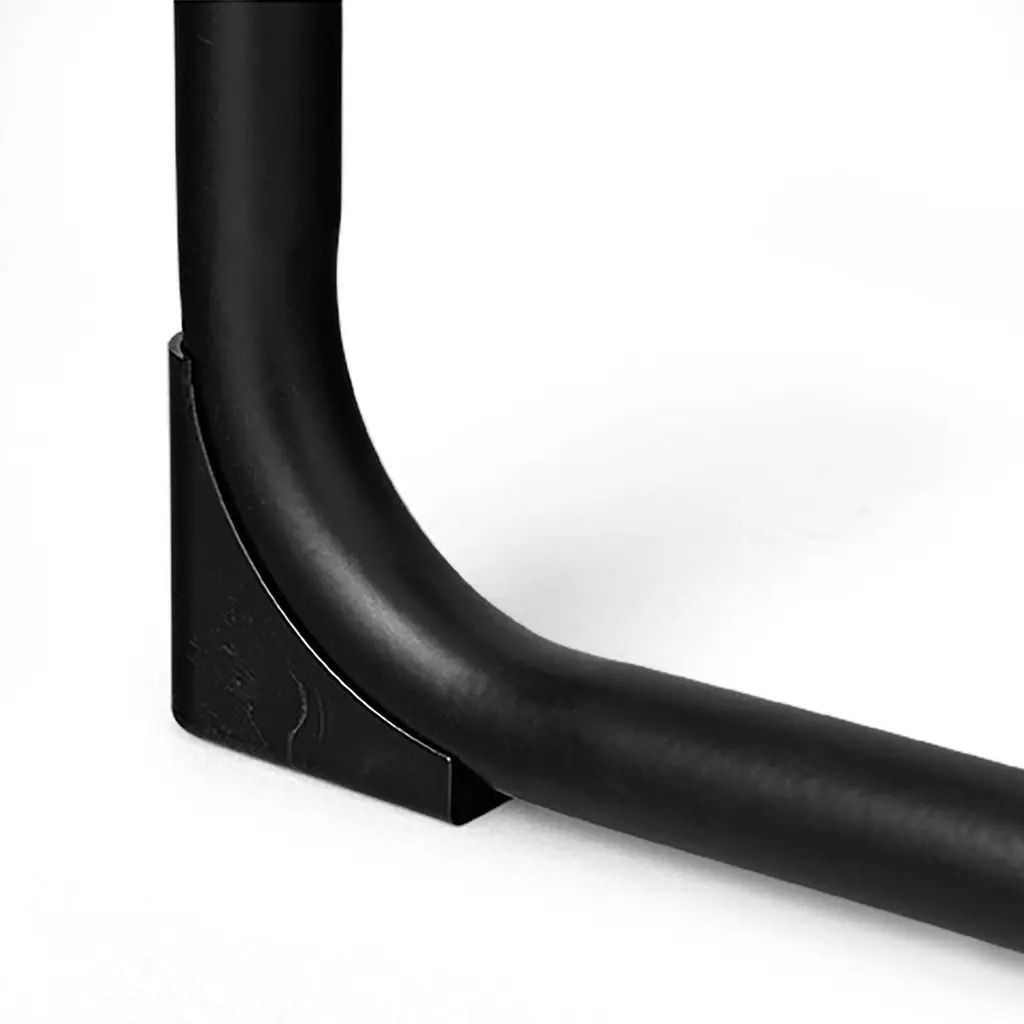 Black leather minimalist dining chairDimensions: L 37 x W 39 x H 68 cmMaterials: Leather, steelThe collection includes benches, chairs, shelves and mirrors in a wide variety of sizes.