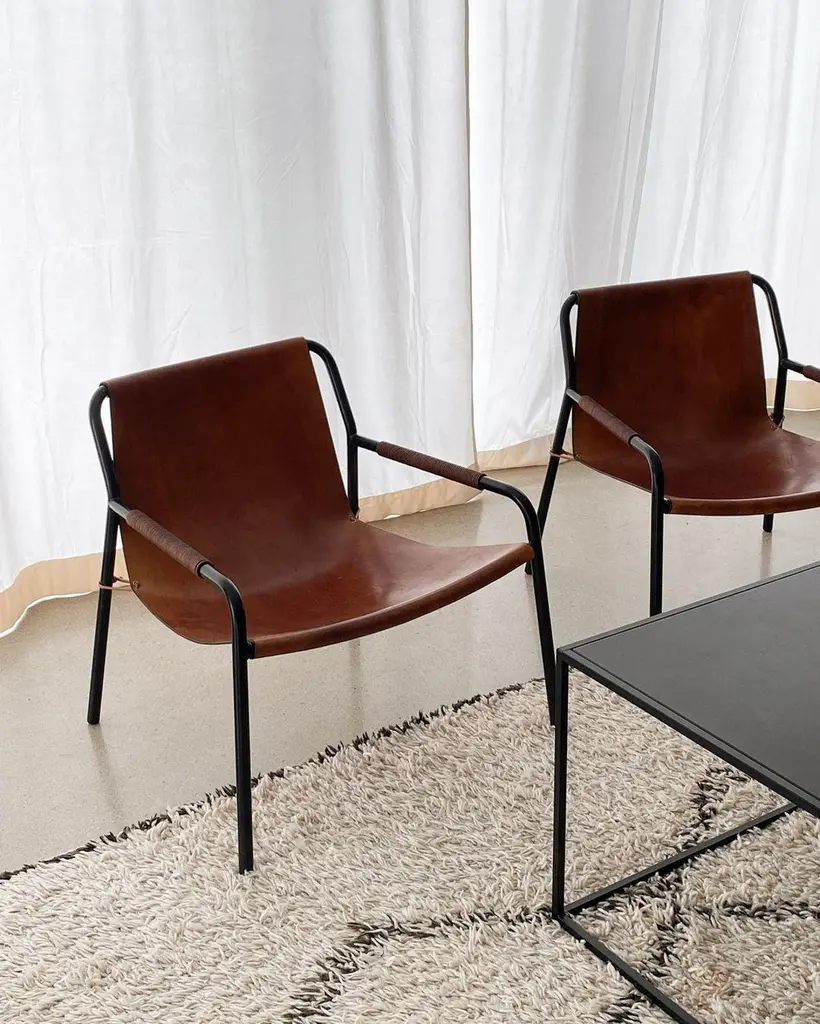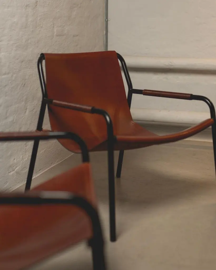Dimensions: D 71 x W 71 x H 70 cmMaterials: Bull Leather, Black Powder Coated SteelAlso Available: Different leather colors available,OX DENMARQ is a Danish design brand aspiring to make beautiful handmade furniture, accessories and lighting in natural high-quality materials in fair prices.“When we set out back in 2003, we were primarily working with vegetable-tanned saddle leather thus the name OX was a tribute to our unique leather and the animal providing it.The other half of our name, DENMARQ, is chosen to emphasize that we are a Danish design brand based on the Danish design tradition and that most of our furniture is produced in Denmark. However, DENMARQ not only refers to our home country, but also to the co-founder and designer - DENnis MARQuart.Before finishing his design studies at Copenhagen Design University, Dennis Marquart did a Blacksmith education. This background is extremely useful when developing and designing products."OX DENMARQ handmade products will only get more beautiful as time passes and natural patina sets in.Many OX products are shaped around marble or vegetable-tanned saddle leather. Stone and leather are materials that will, and should, get marks over time. But they will also age with a very special beauty. When you learn to appreciate the beauty of maturity and of time passing, you have learned to appreciate patina the way it should be appreciated.