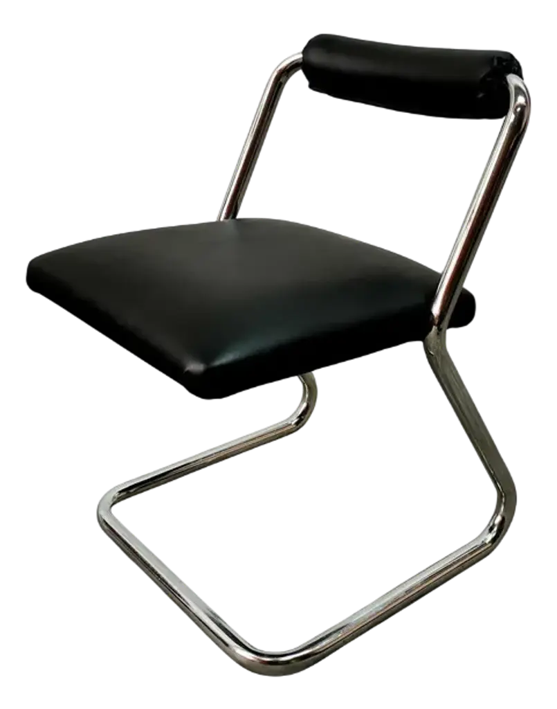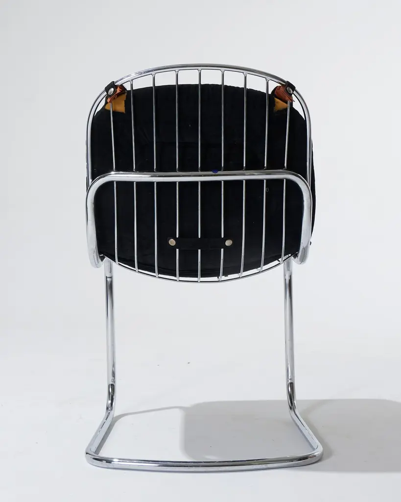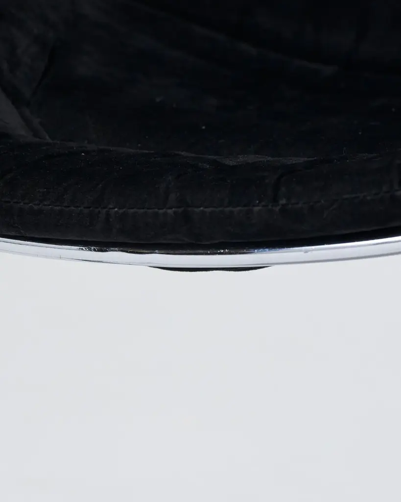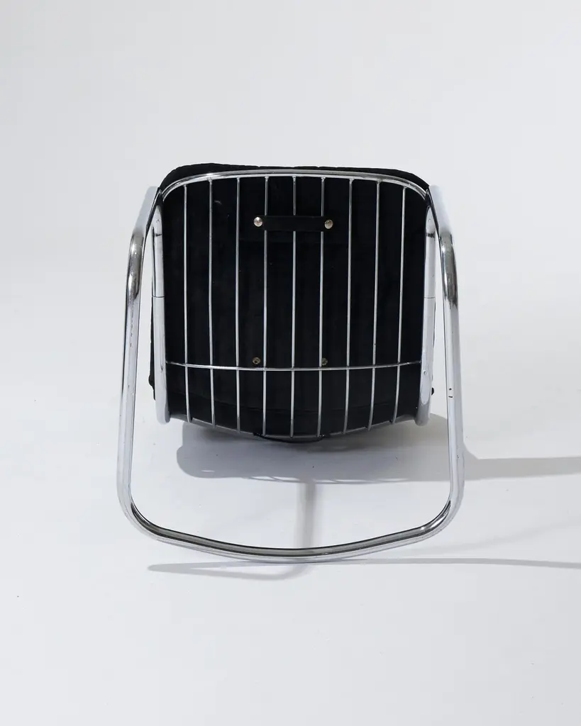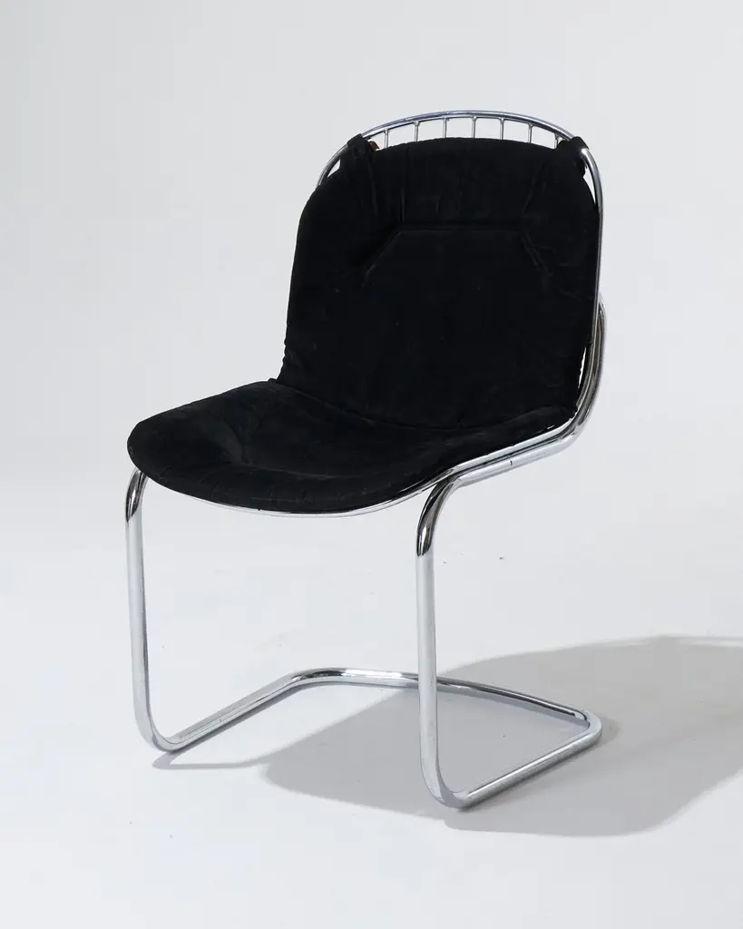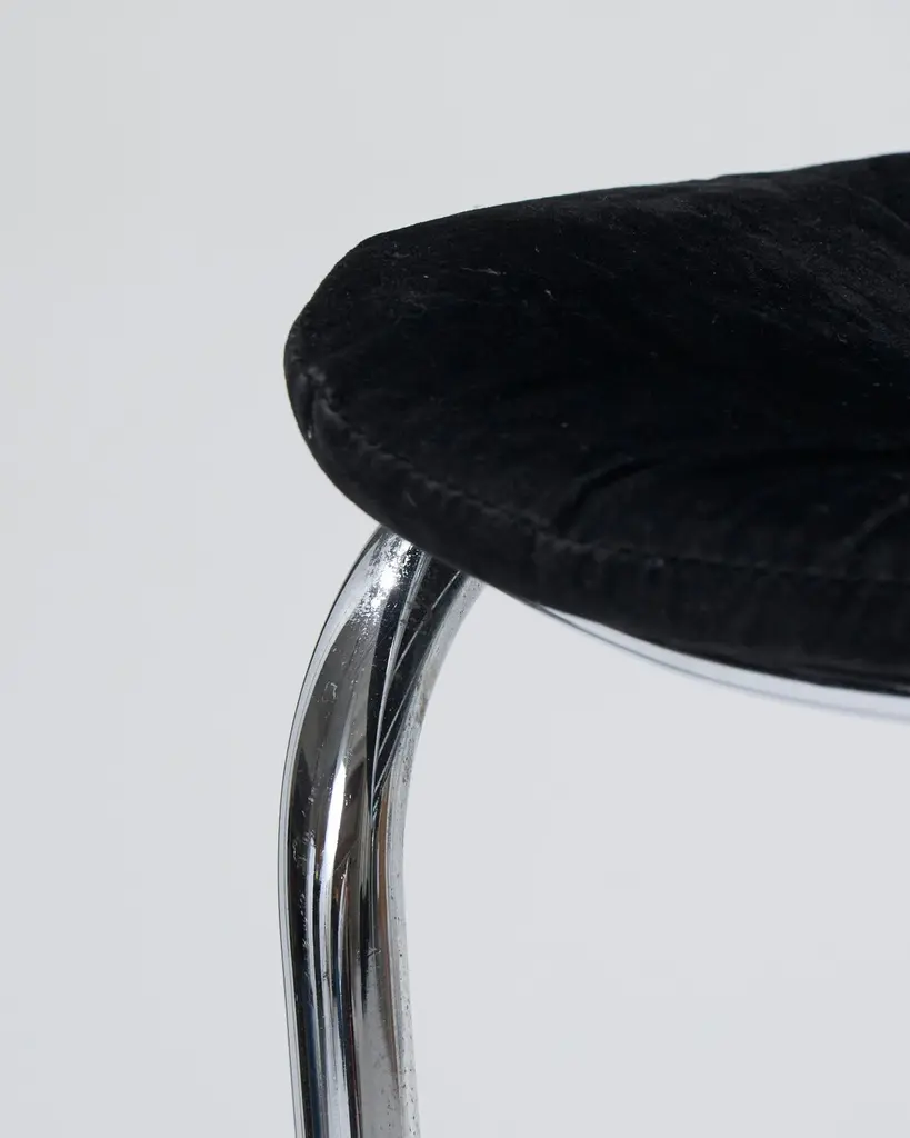 Black Velvet Chair With Tubular Chrome Base By Gastone Rinaldi, 1970s
