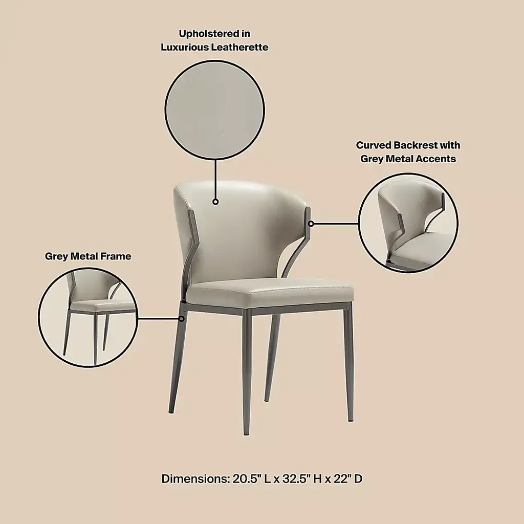 The Blossompoint light gray dining chair, set of 2 is where contemporary elegance meets sculptural design. Wrapped in smooth leatherette, it features a gracefully curved back and open sides that bring lightness to its bold form. The sturdy metal frame adds a refined contrast, while the plush seat ensures comfort that lasts. It's a statement piece made to elevate the everyday.