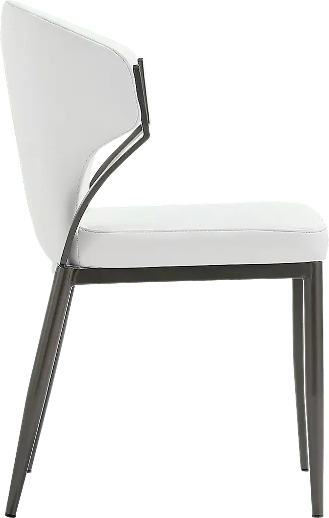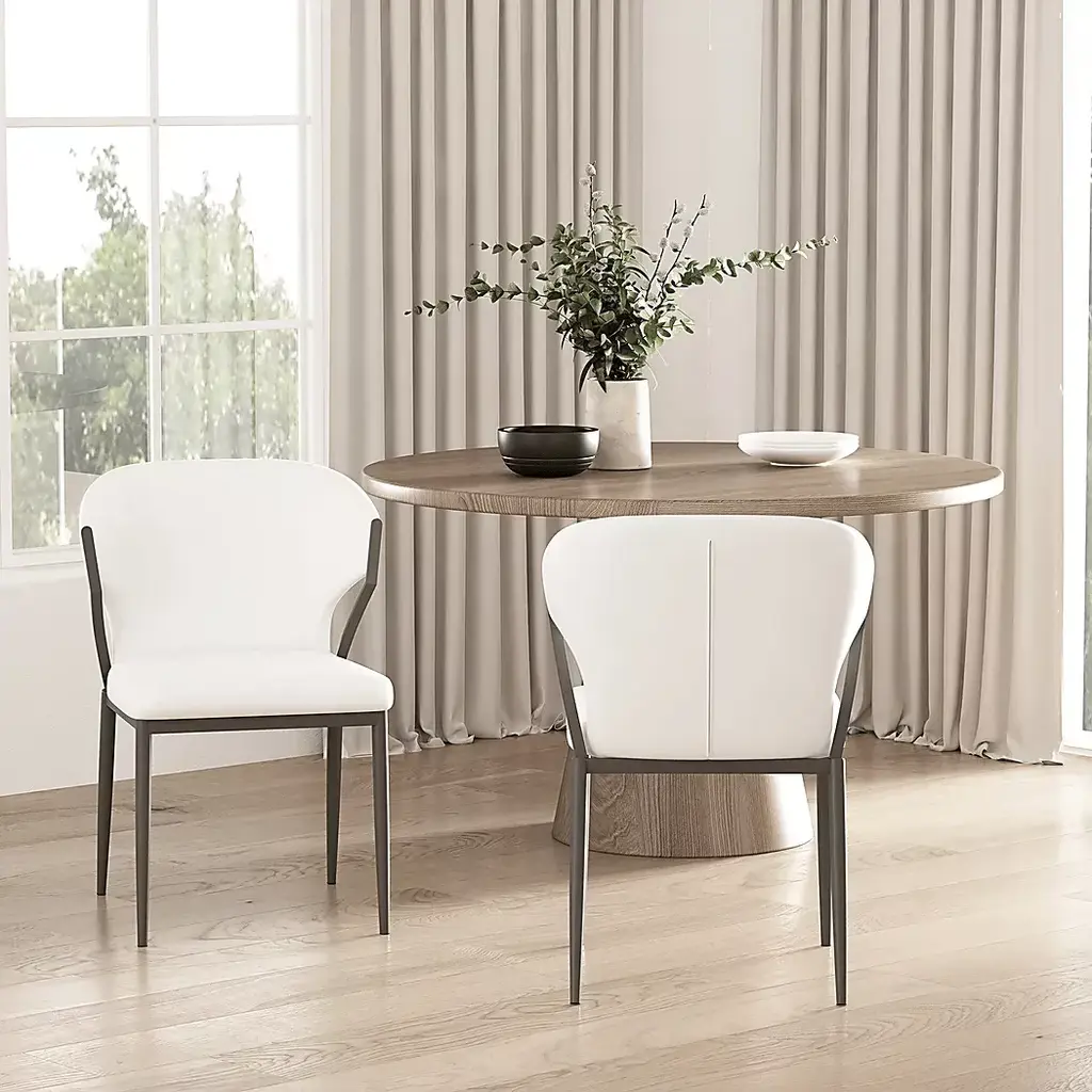 The Blossompoint white dining chair, set of 2 is where contemporary elegance meets sculptural design. Wrapped in smooth leatherette, it features a gracefully curved back and open sides that bring lightness to its bold form. The sturdy metal frame adds a refined contrast, while the plush seat ensures comfort that lasts. It's a statement piece made to elevate the everyday.