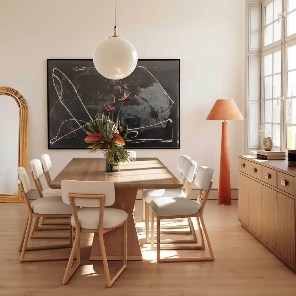 Discover the perfect blend of sustainability and style with the Bobbie Recycled Fabric Dining Chair, featuring a solid wood frame that guarantees durability and a timeless silhouette that fits seamlessly into any dining space. The chair's design, accentuated by wooden studs at the back for a dash of uniqueness, provides excellent balance and comfort, thanks to its soft, textured fabric with a washed finish and a comfy cushioned seat. Not only does this piece offer exceptional comfort and aesthetic appeal, but it also champions environmental responsibility with its super cleanable, PFAS-free, liquid repellent coating made from over 880 pounds of recycled plastic bottles for every 1000 meters of fabric, ensuring that style and sustainability go hand in hand.