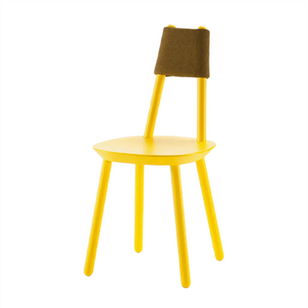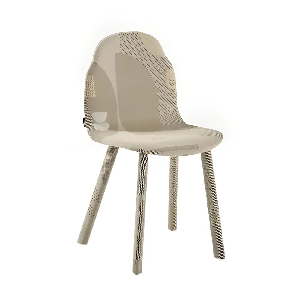 The Upholstered Body Dining Chair features a backrest that mirrors the human silhouette. Constructed from ash wood with molded veneer layers, the chair showcases smooth, organic lines. It is available in various finishes, including natural and a spectrum of stains. Available in a range of high-performance fabric.