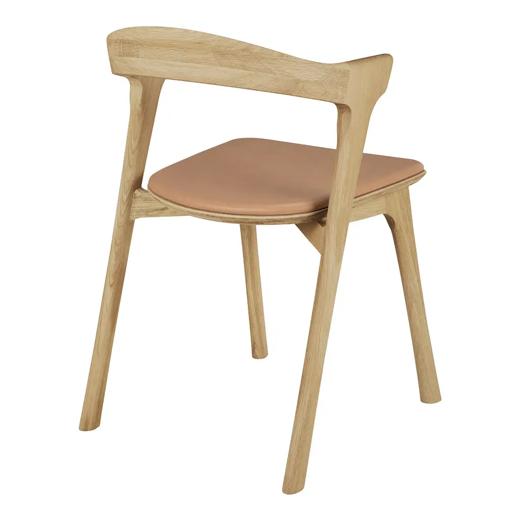 Reminiscent of a goat's curved horns, the Bok collection combines sculptural elegance and contemporary crafting into a graceful and airy form. Over the years, the Bok dining chair has become one of Ethnicraft's most recognizable designs. This version features a cushion for extra comfort.