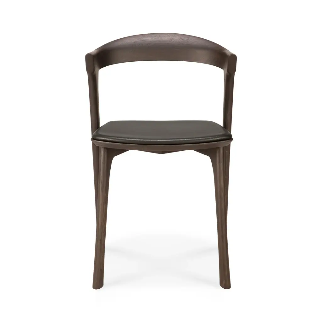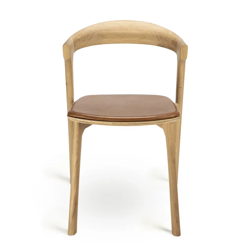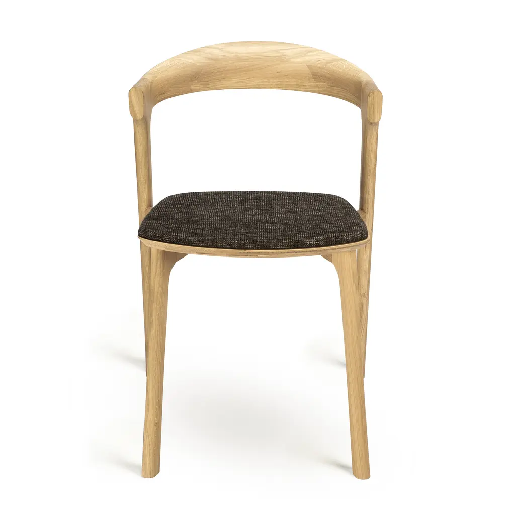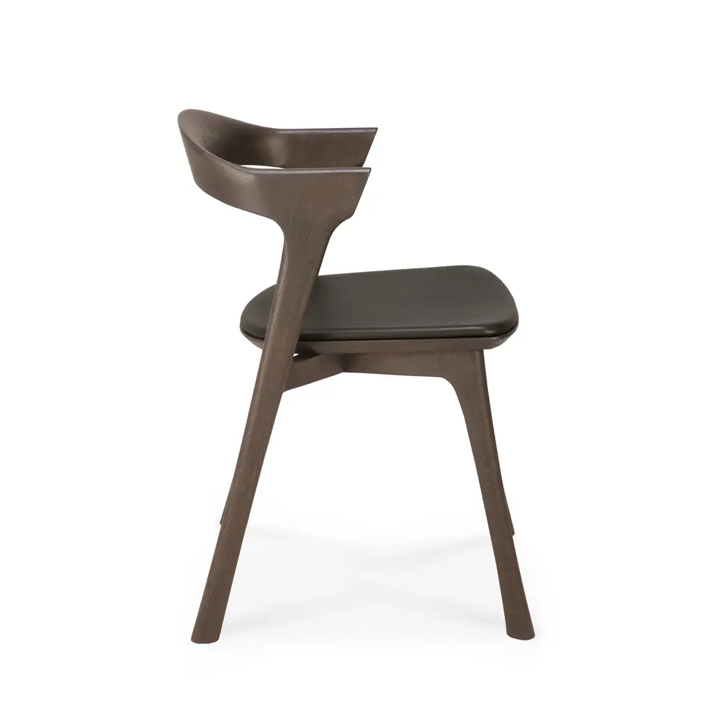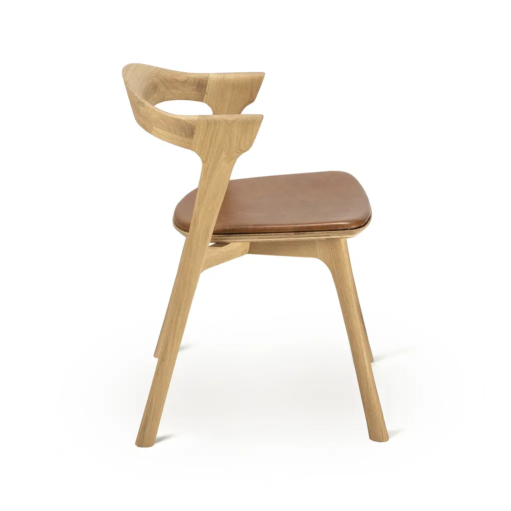 An upholstered version of one of the most recognizable designs from Ethnicraft, the Bok Upholstered Dining Chair brings sleek sophistication to your favorite dining space. Crafted from solid oak wood with a varnish finish, this dining chair is topped with leather or fabric upholstery for an added touch of comfort. Combining sculptural elegance and contemporary crafting, this graceful chair offers an airy form sure to bring a light, yet sturdy touch to your home. Highlights