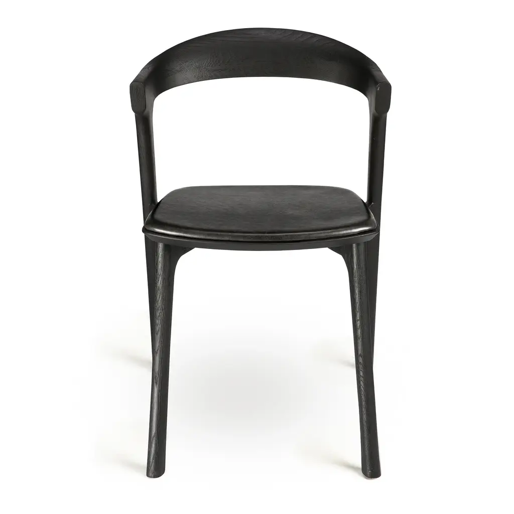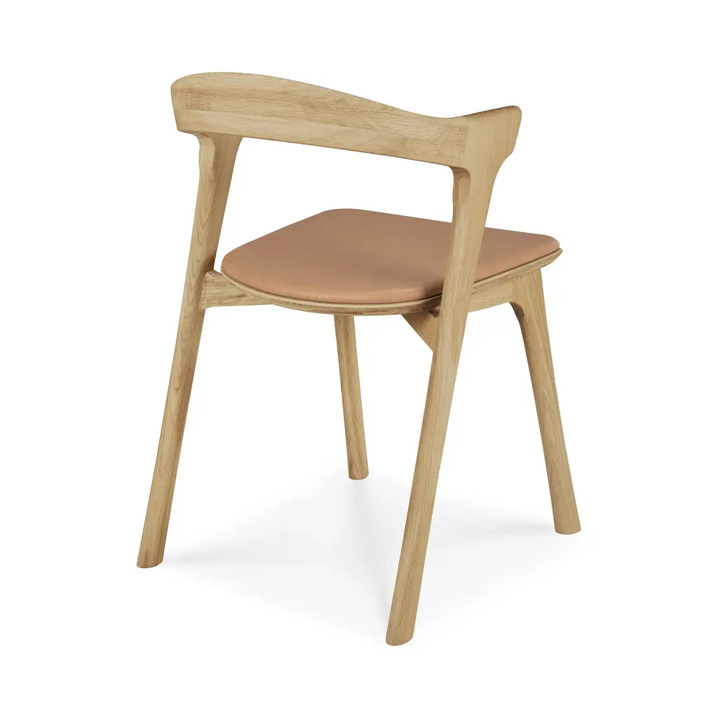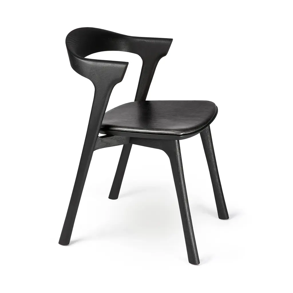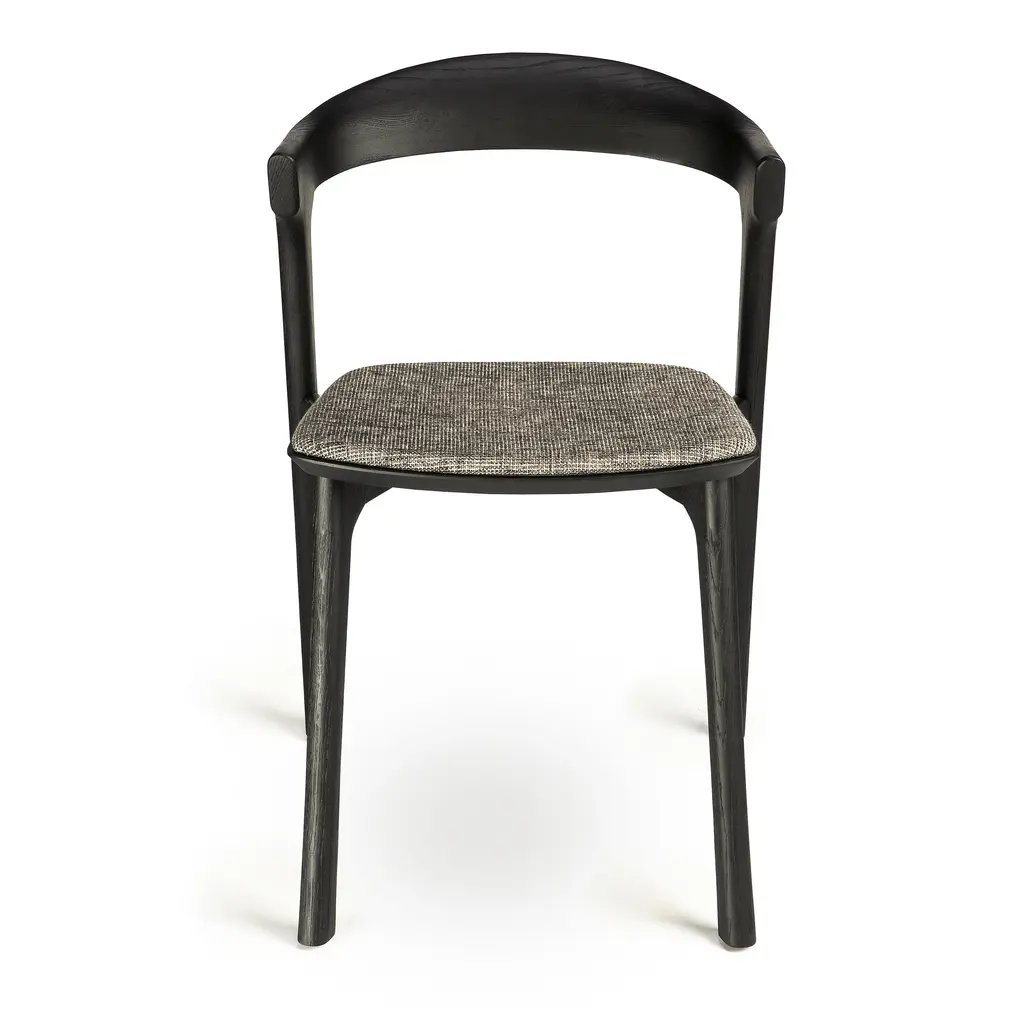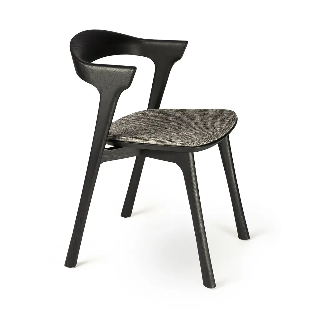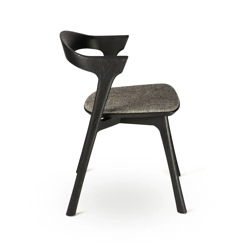 An upholstered version of one of the most recognizable designs from Ethnicraft, the Bok Upholstered Dining Chair brings sleek sophistication to your favorite dining space. Crafted from solid oak wood with a varnish finish, this dining chair is topped with leather or fabric upholstery for an added touch of comfort. Combining sculptural elegance and contemporary crafting, this graceful chair offers an airy form sure to bring a light, yet sturdy touch to your home. Highlights