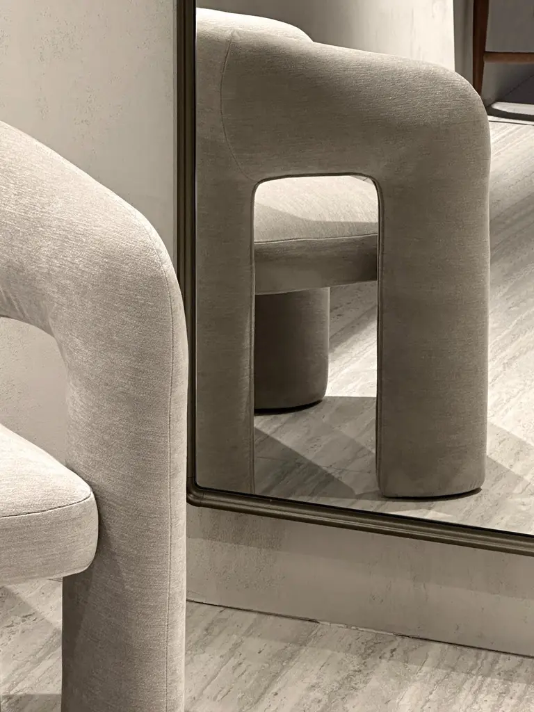 Bold Dining Armchair by MohdernDimensions: W 64 x D 58 x H 73 cmMaterials: Fabric, BoucléBold is a refined furniture collection designed and produced by the Mohdern brand. The series includes the armchair and lounge chair; the sofa in different designs; the dining chair and a comfortable bed. Each element is made of high-quality materials and in a wide range of fabrics.Enveloping lines and organic shapes create a dialogue between know-how and a contemporary design language. Bold is an expression of the best Made in Italy, combining style and function through an elegant and modern design.The Bold chair is the perfect companion for your convivial moments, whether intimate dinners or family gatherings. Its versatility allows it to adapt to different situations: simply combine it with an elegant table to create a refined dining room, or use it as a design element in a more informal style kitchen. A design that fills the space thanks to its personality and strong scenic presence. In addition, its upholstery in a soft bouclé fabric adds a touch of luxury and sophistication to the surroundings.The Bold chair is available in two versions, with or without armrests.