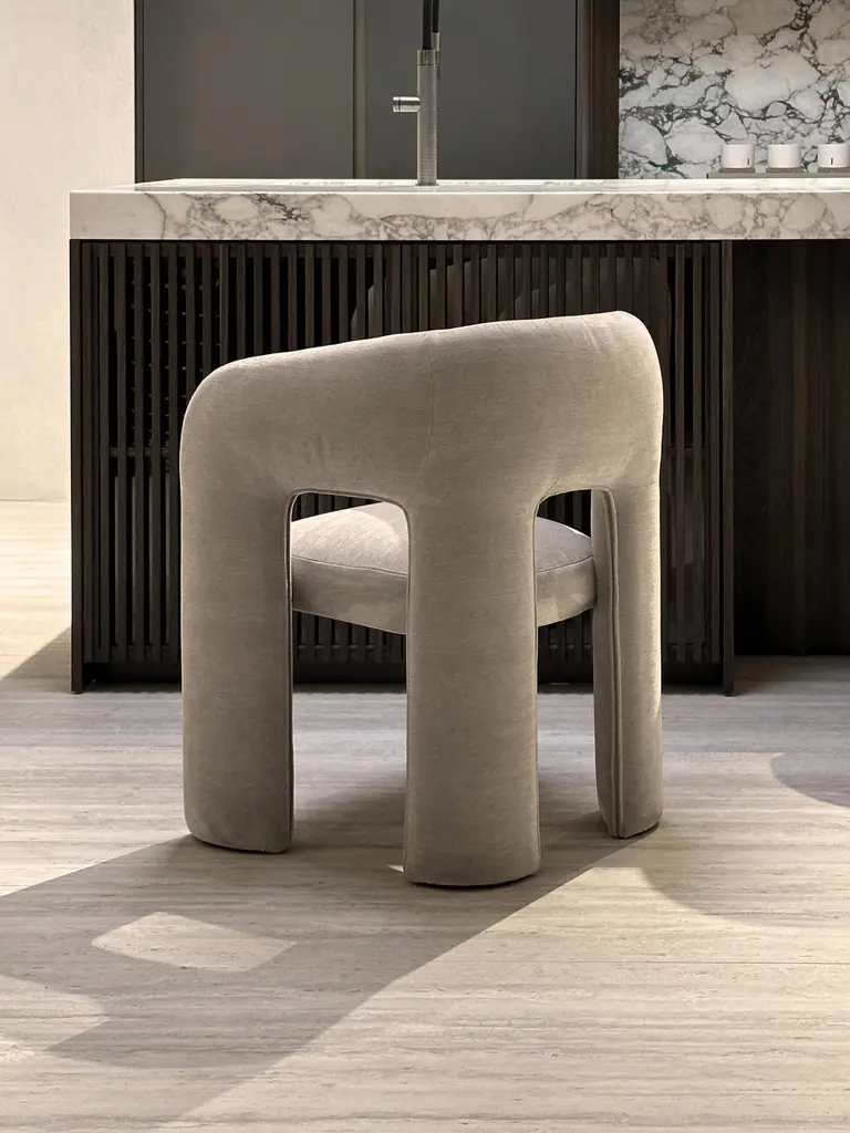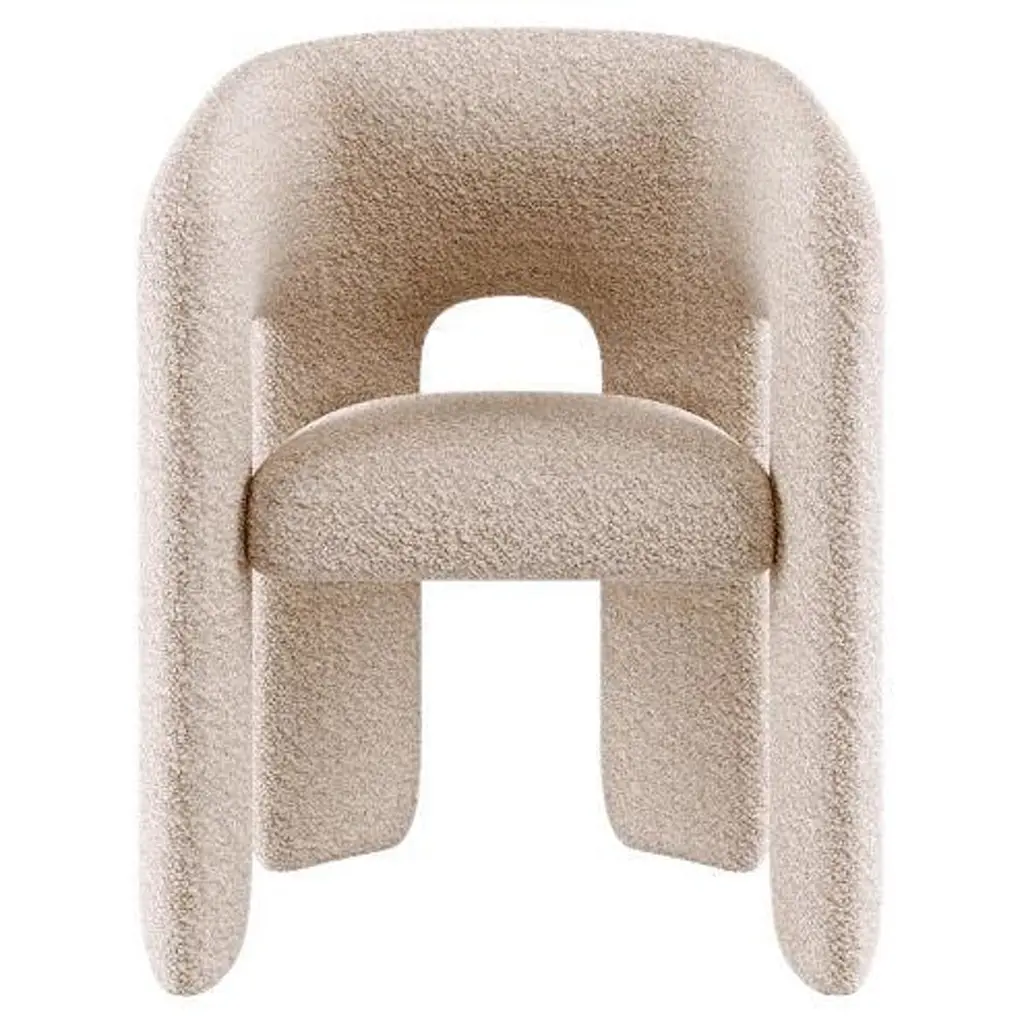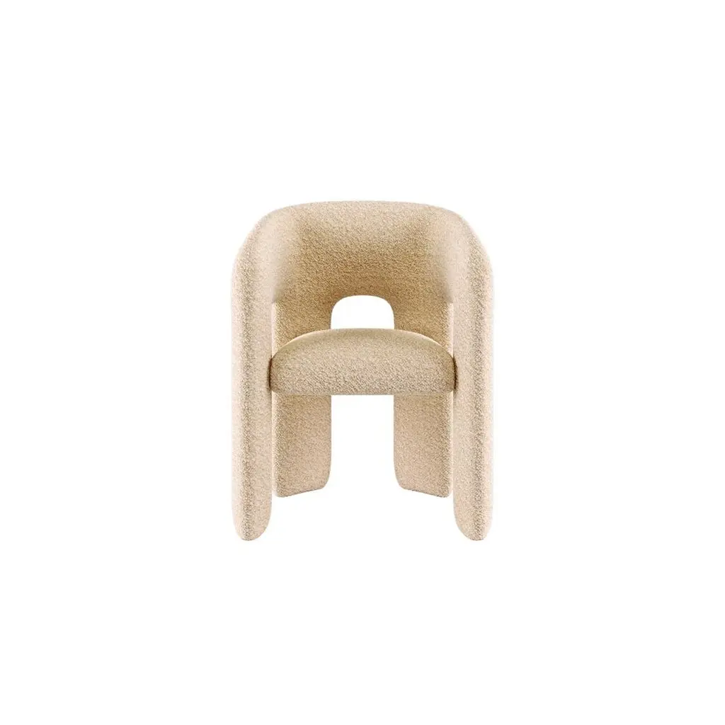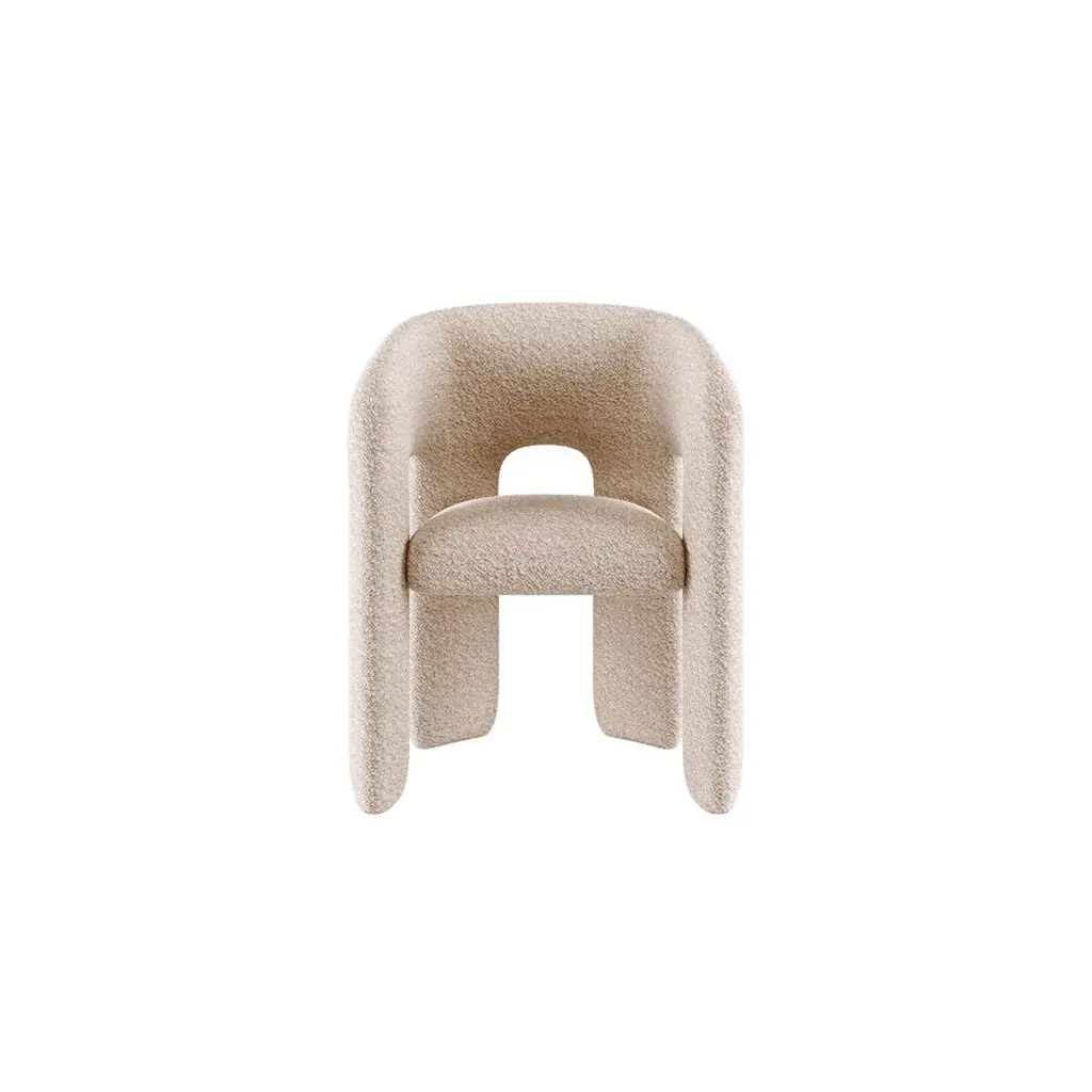 Bold Dining Armchair by MohdernDimensions: W 64 x D 58 x H 73 cmMaterials: Fabric, BoucléBold is a refined furniture collection designed and produced by the Mohdern brand. The series includes the armchair and lounge chair; the sofa in different designs; the dining chair and a comfortable bed. Each element is made of high-quality materials and in a wide range of fabrics.Enveloping lines and organic shapes create a dialogue between know-how and a contemporary design language. Bold is an expression of the best Made in Italy, combining style and function through an elegant and modern design.The Bold chair is the perfect companion for your convivial moments, whether intimate dinners or family gatherings. Its versatility allows it to adapt to different situations: simply combine it with an elegant table to create a refined dining room, or use it as a design element in a more informal style kitchen. A design that fills the space thanks to its personality and strong scenic presence. In addition, its upholstery in a soft bouclé fabric adds a touch of luxury and sophistication to the surroundings.The Bold chair is available in two versions, with or without armrests.