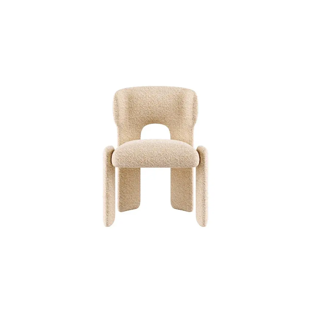 Bold Dining Chair by MohdernDimensions: W 61 x D 54 x H 79 cmMaterials: Fabric, BoucléBold is a refined furniture collection designed and produced by the Mohdern brand. The series includes the armchair and lounge chair; the sofa in different designs; the dining chair and a comfortable bed. Each element is made of high-quality materials and in a wide range of fabrics.Enveloping lines and organic shapes create a dialogue between know-how and a contemporary design language. Bold is an expression of the best Made in Italy, combining style and function through an elegant and modern design.The Bold chair is the perfect companion for your convivial moments, whether intimate dinners or family gatherings. Its versatility allows it to adapt to different situations: simply combine it with an elegant table to create a refined dining room, or use it as a design element in a more informal style kitchen. A design that fills the space thanks to its personality and strong scenic presence. In addition, its upholstery in a soft bouclé fabric adds a touch of luxury and sophistication to the surroundings.The Bold chair is available in two versions, with or without armrests.