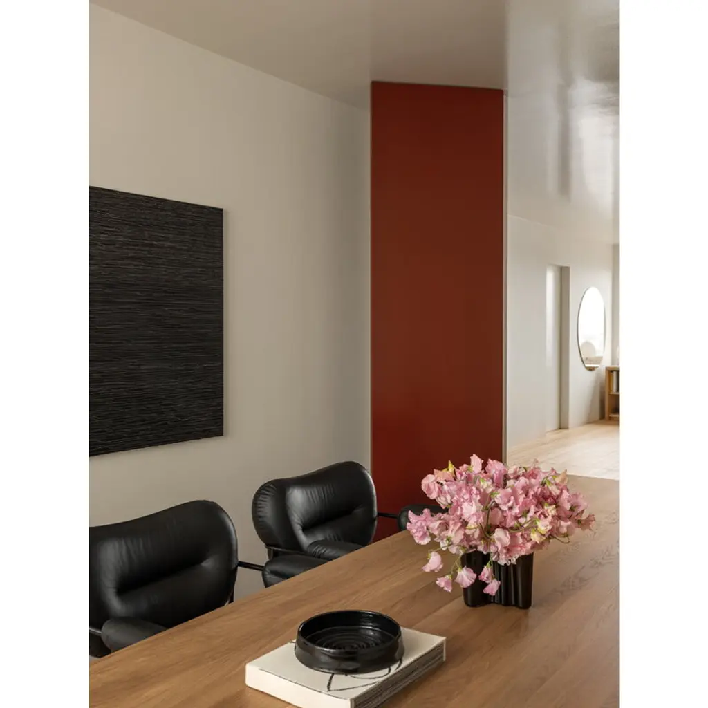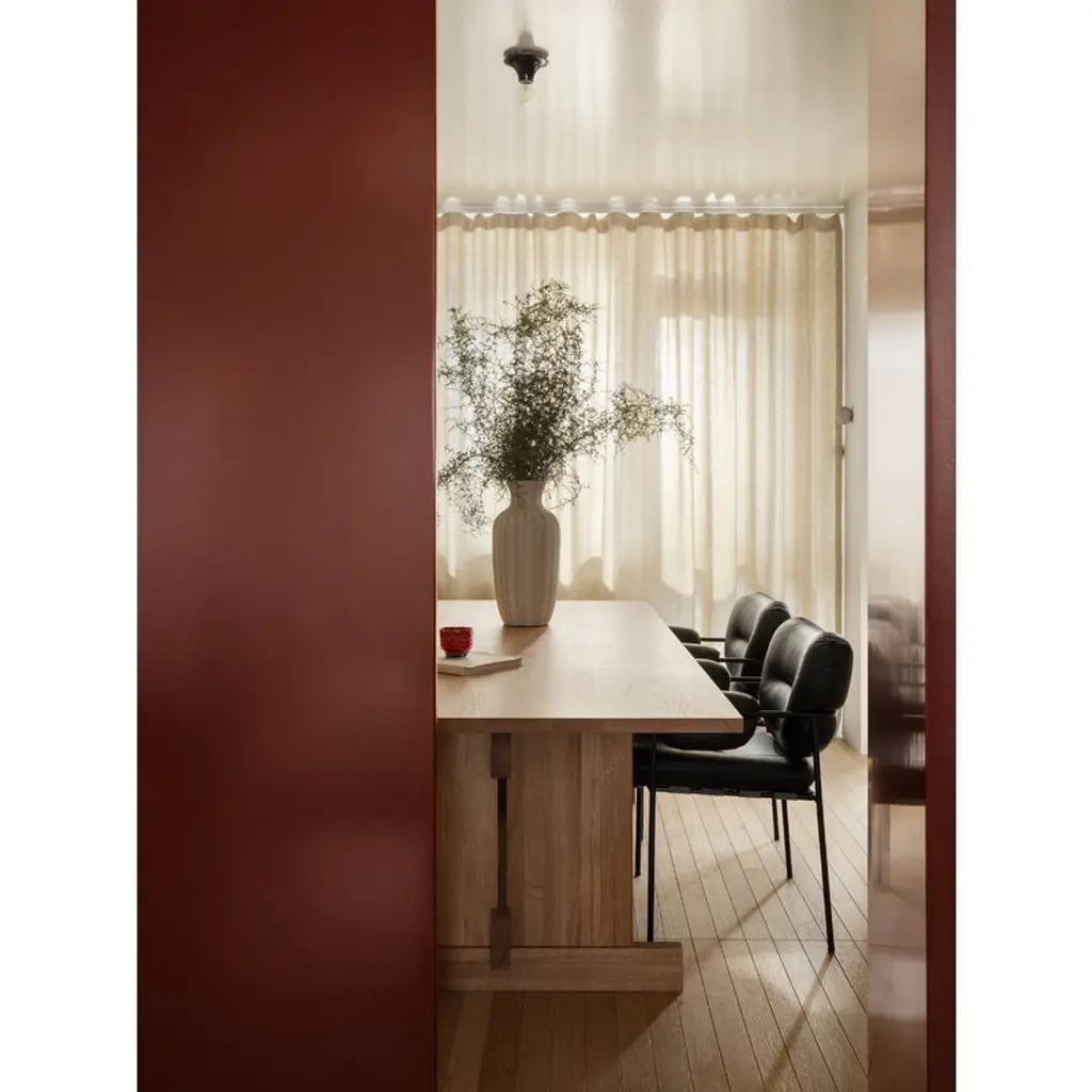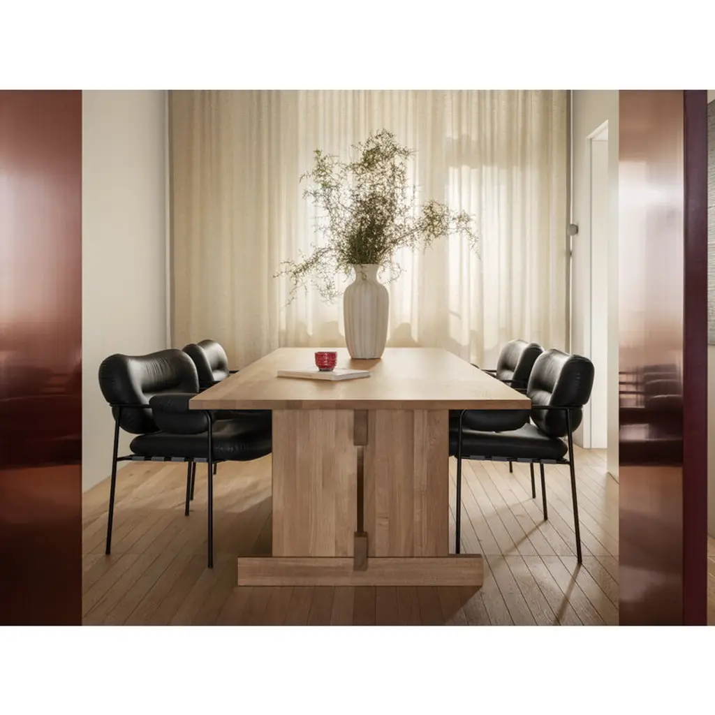 Fogia's Bollo dining chair, designed by Andreas Engesvik, combines clean lines with unparalleled coziness. The charming Bollo chair, previously known as the Spisolini chair, consists of a sleek metal body and plush, leather-upholstered cushions in a deliberately generous size, just like its sibling, the Bollo lounge chair. In Bollo chair, Engesvik has opted for a more upright position to make it suitable for dining. “I had the idea for Bollo while holidaying in southern Europe. My friends and I stayed seated for hours after eating, enjoying good company and conversation. Bollo is made for evenings like that – but you’re sure to love using it every day, too.”