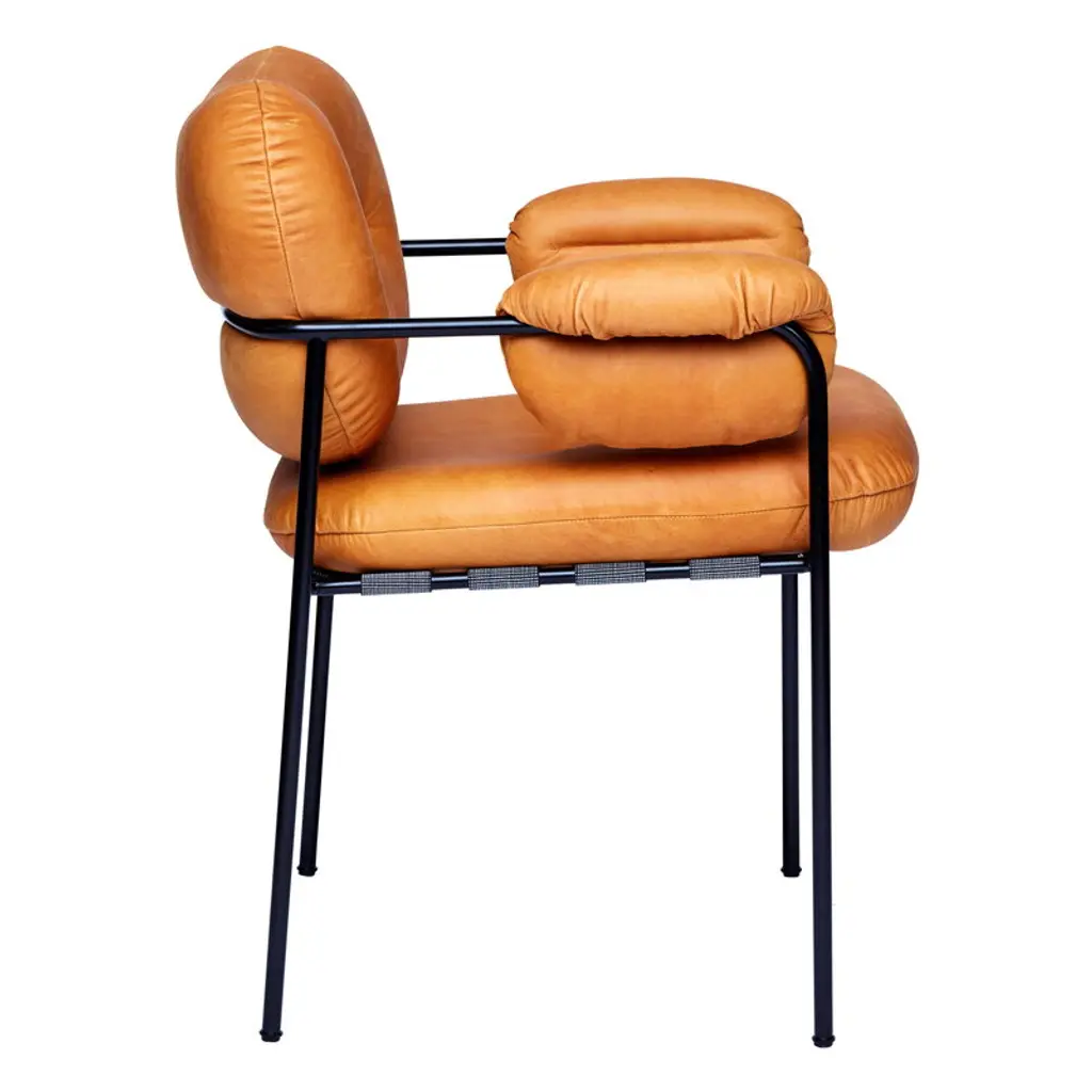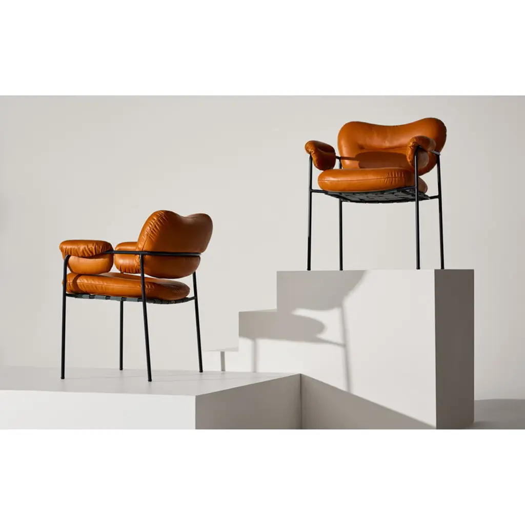 Fogia's Bollo dining chair, designed by Andreas Engesvik, combines clean lines with unparalleled coziness. The charming Bollo chair, previously known as the Spisolini chair, consists of a sleek metal body and plush, leather-upholstered cushions in a deliberately generous size, just like its sibling, the Bollo lounge chair. In Bollo chair, Engesvik has opted for a more upright position to make it suitable for dining. “I had the idea for Bollo while holidaying in southern Europe. My friends and I stayed seated for hours after eating, enjoying good company and conversation. Bollo is made for evenings like that – but you’re sure to love using it every day, too.”