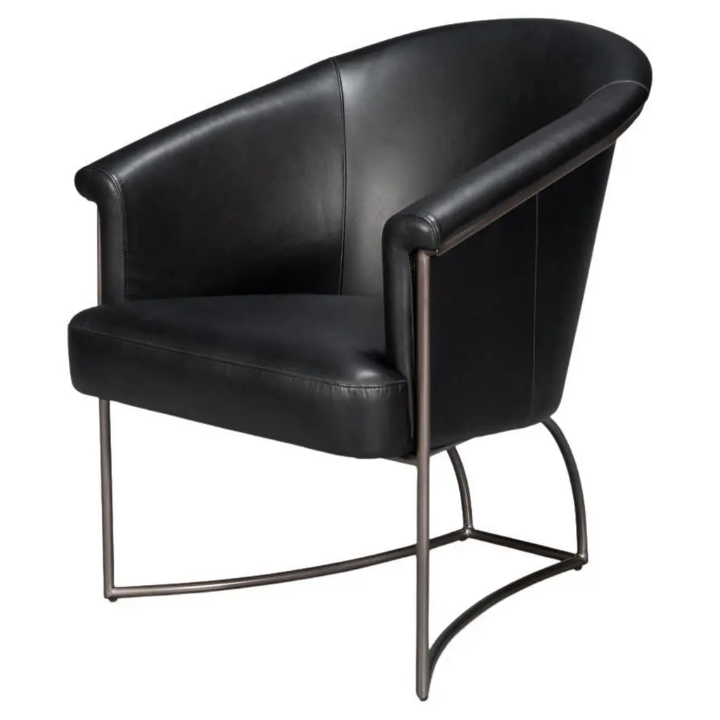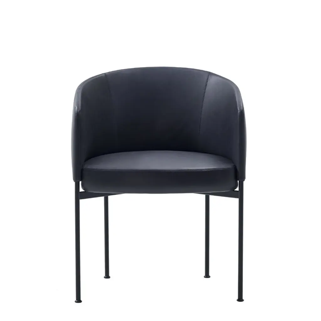 Bonnet Dining chair by Adea has a graphic appearance that results from the combination of sleek, black metal legs and curved shell with aniline leather upholstery. The chair is perfect by a dining table or as a side chair in any room. Designed by Mats Broberg and Johan Ridderstråle, the Bonnet collection combines light proportions with maximum comfort. Members of the Bonnet family complement each other and fit into various styles of décor, both in private and public contexts. Adea furniture is manufactured in Finland.