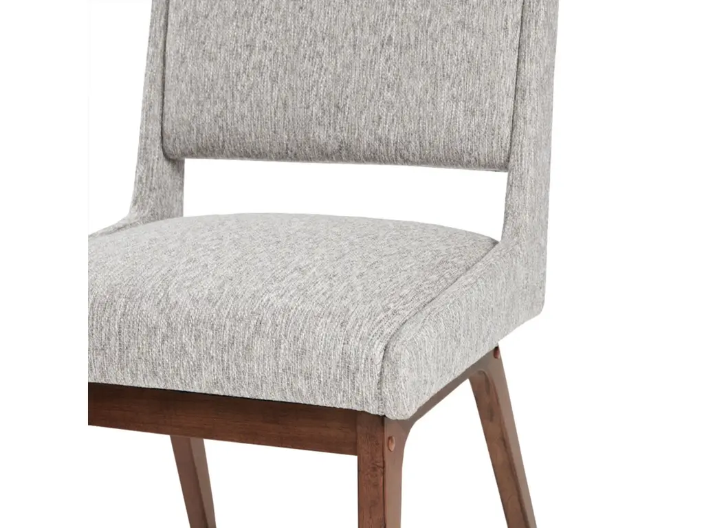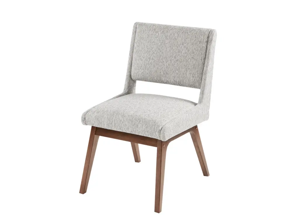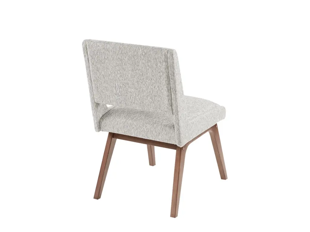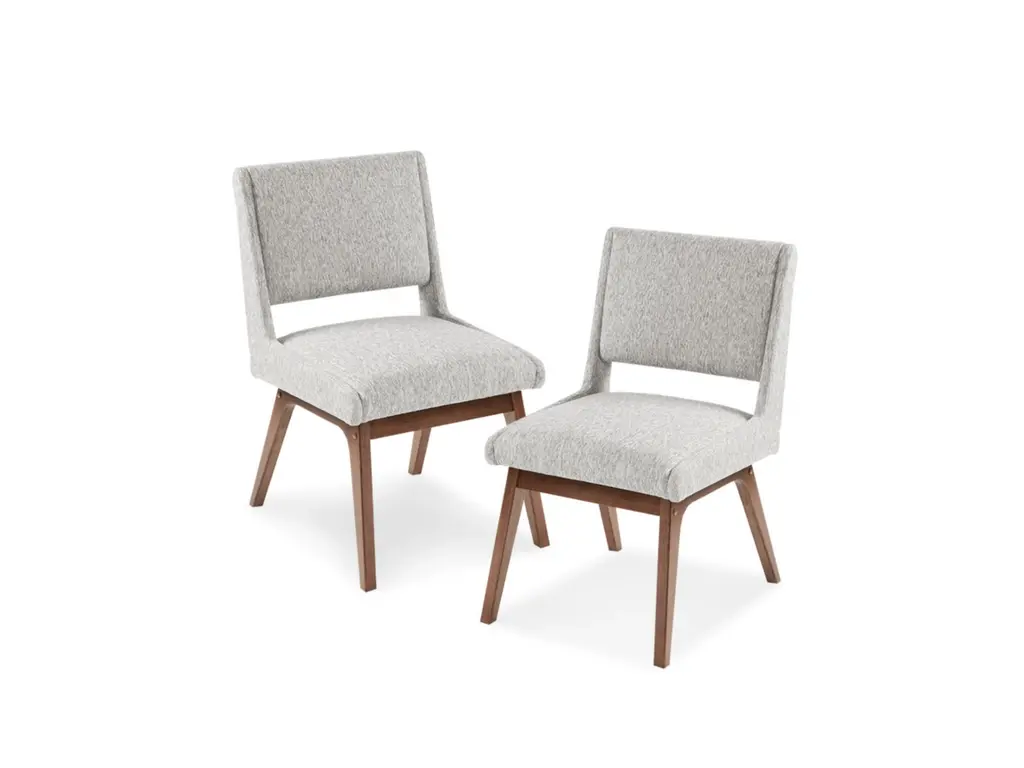 Beautifully crafted, the INK+IVY Boomerang dining side chair set adds a chic look to your dining area. The attached seat cushion and back are fully upholstered for a superior comfort, while straight solid wood legs provide exceptional support. A pecan finish on the legs of these dining chairs complements the light grey upholstery creating a warm appeal.