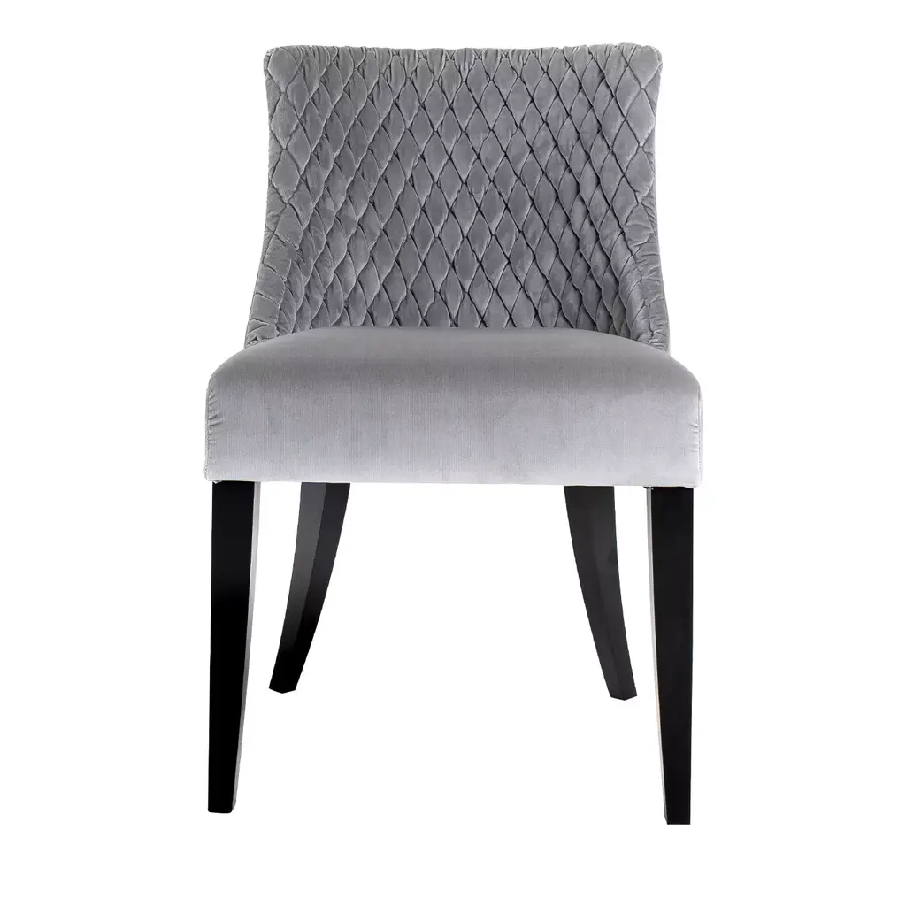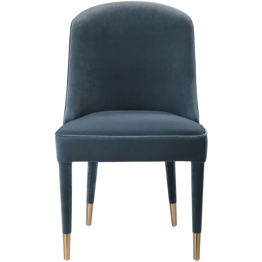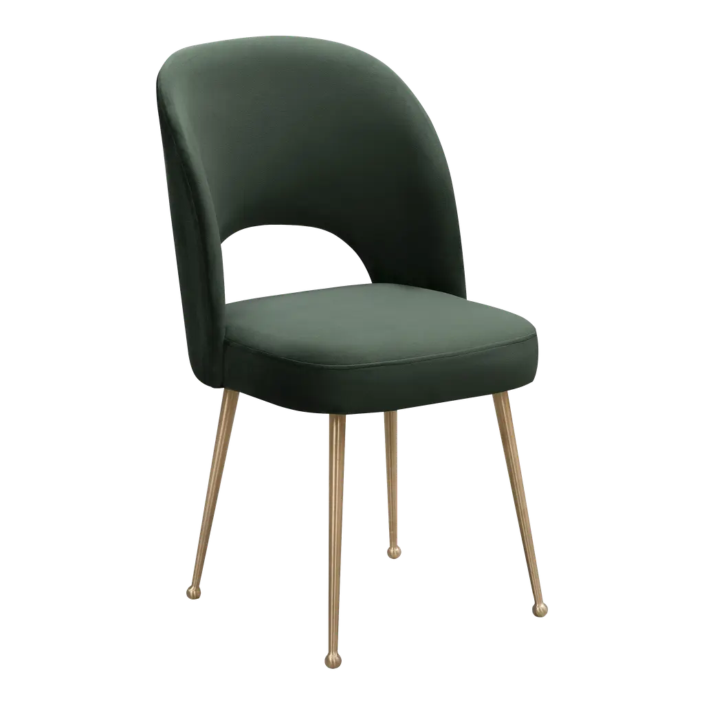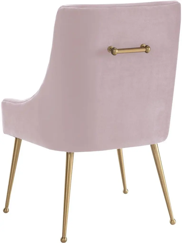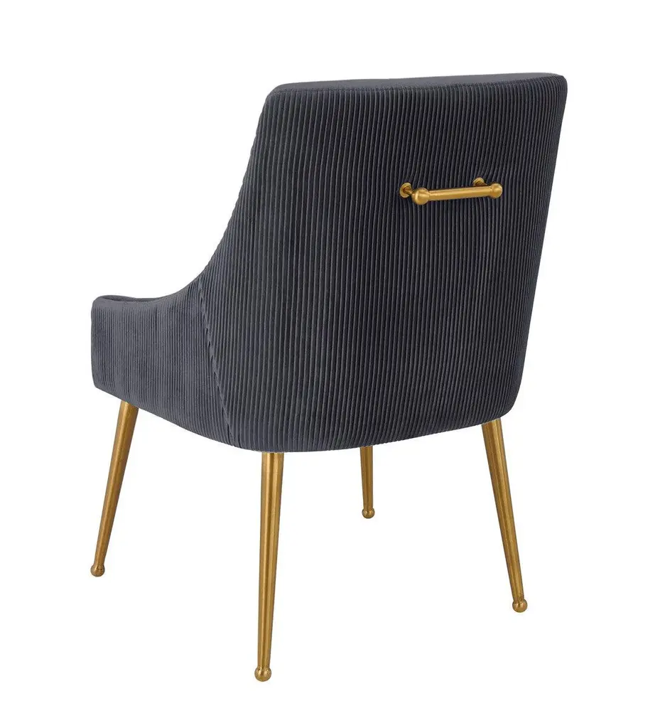 Sit pretty in this sumptuous yet durable velvet chair. The Boston dazzles as a dining chair or as an accent piece. Available in several colors with fab gold stainless steel legs and a matching handle on the back. Prop it into any room for a luxe, glamour effect.