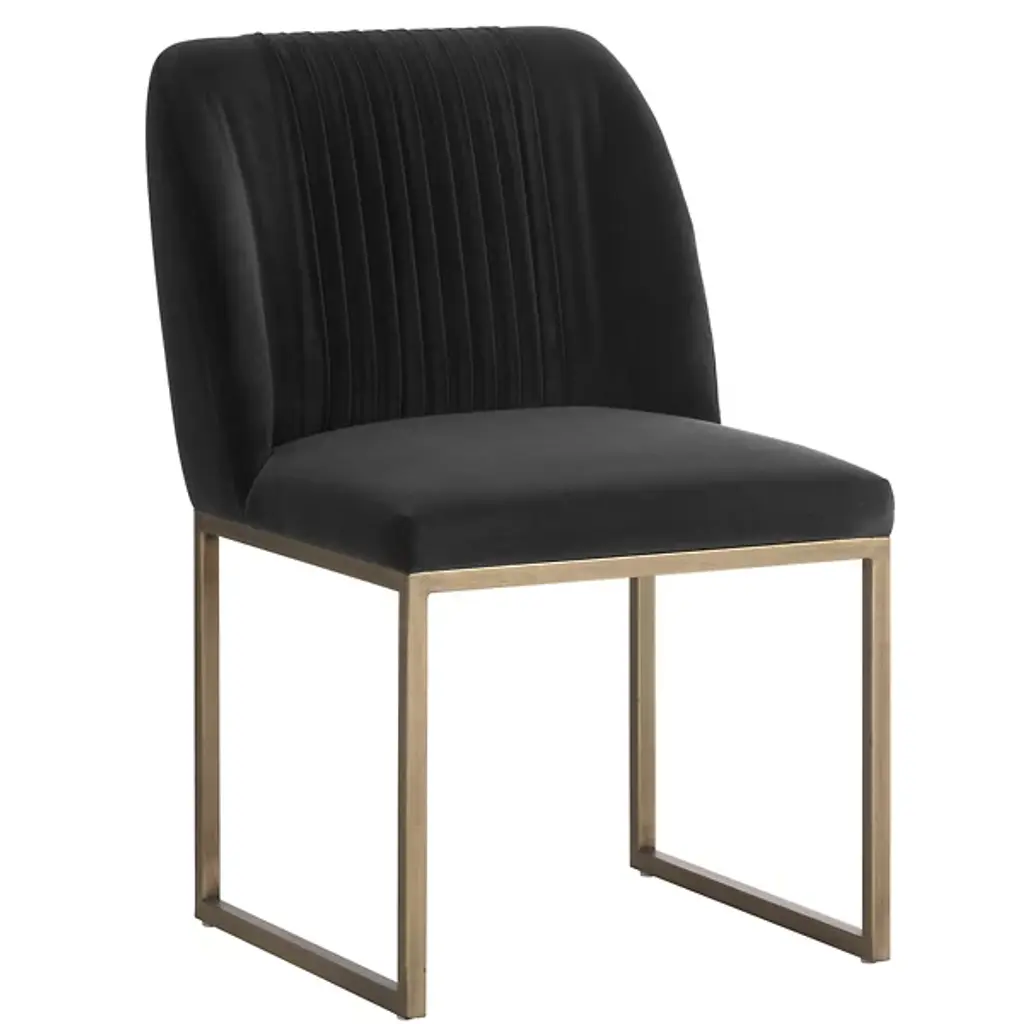Sit pretty in this sumptuous yet durable velvet chair. The Boston dazzles as a dining chair or as an accent piece. Available in several colors with fab gold stainless steel legs and a matching handle on the back. Prop it into any room for a luxe, glamour effect.