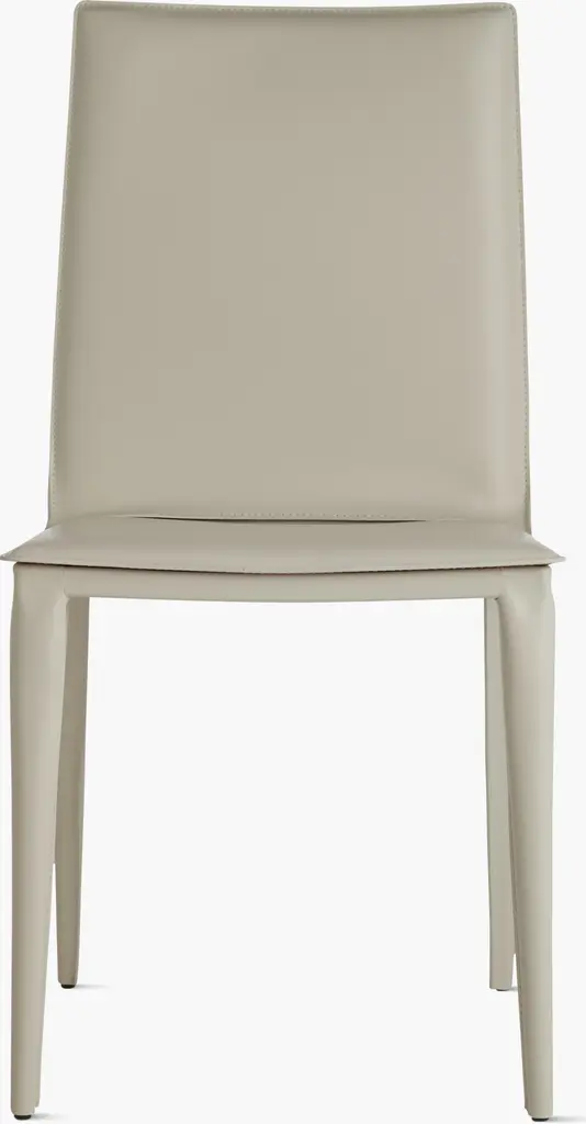 Bottega Chair (2003) is constructed with a harmonic sheet steel back that flexes with you for continuous support. Furthering this accommodating experience, Bottega is wrapped in smooth-as-silk stain-resistant leather that's hand-sewn onto the slender but strong steel frame to hug every angle and curve. The seat is lightly padded, creating a combination of suppleness and strength that's not always easy to find. This beloved collection is a top choice for comfortable, elegant seating in any space, from dining room to home office to executive suite and beyond. Made in Italy.