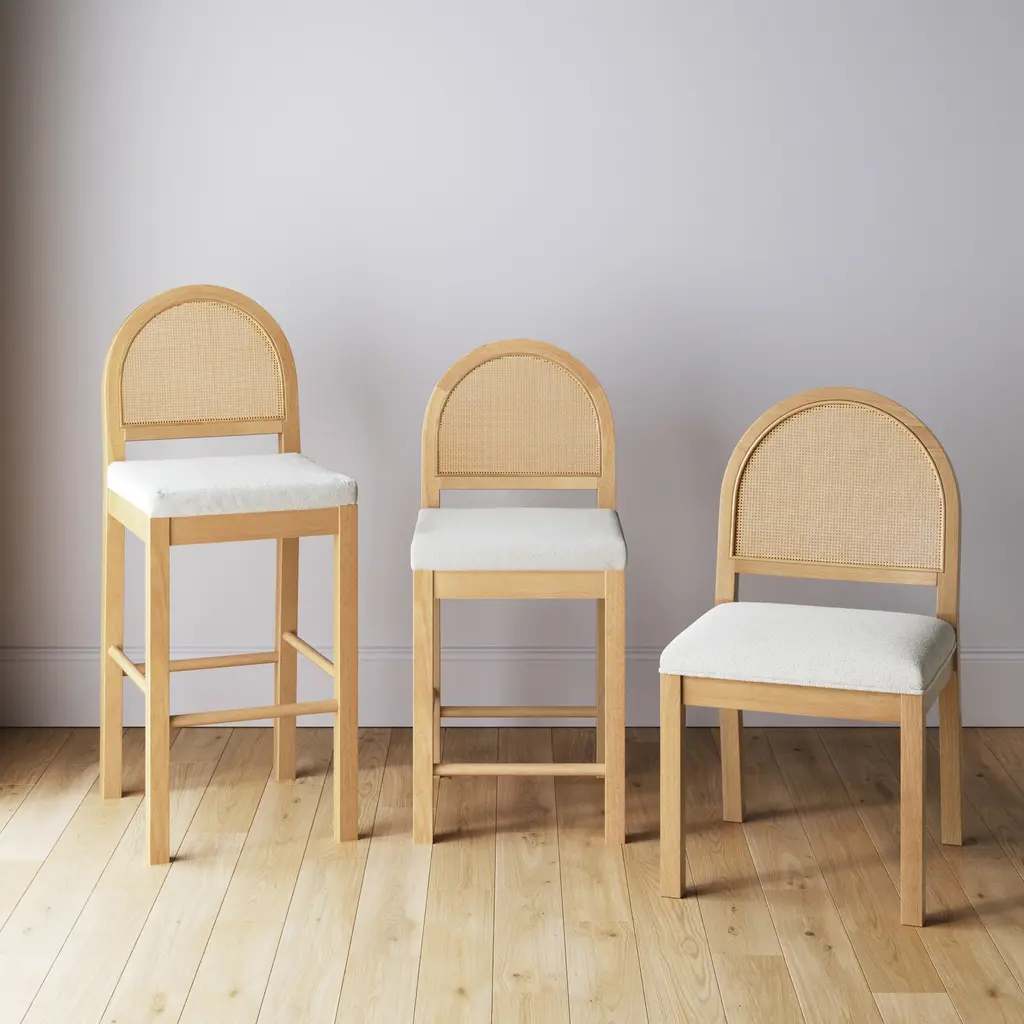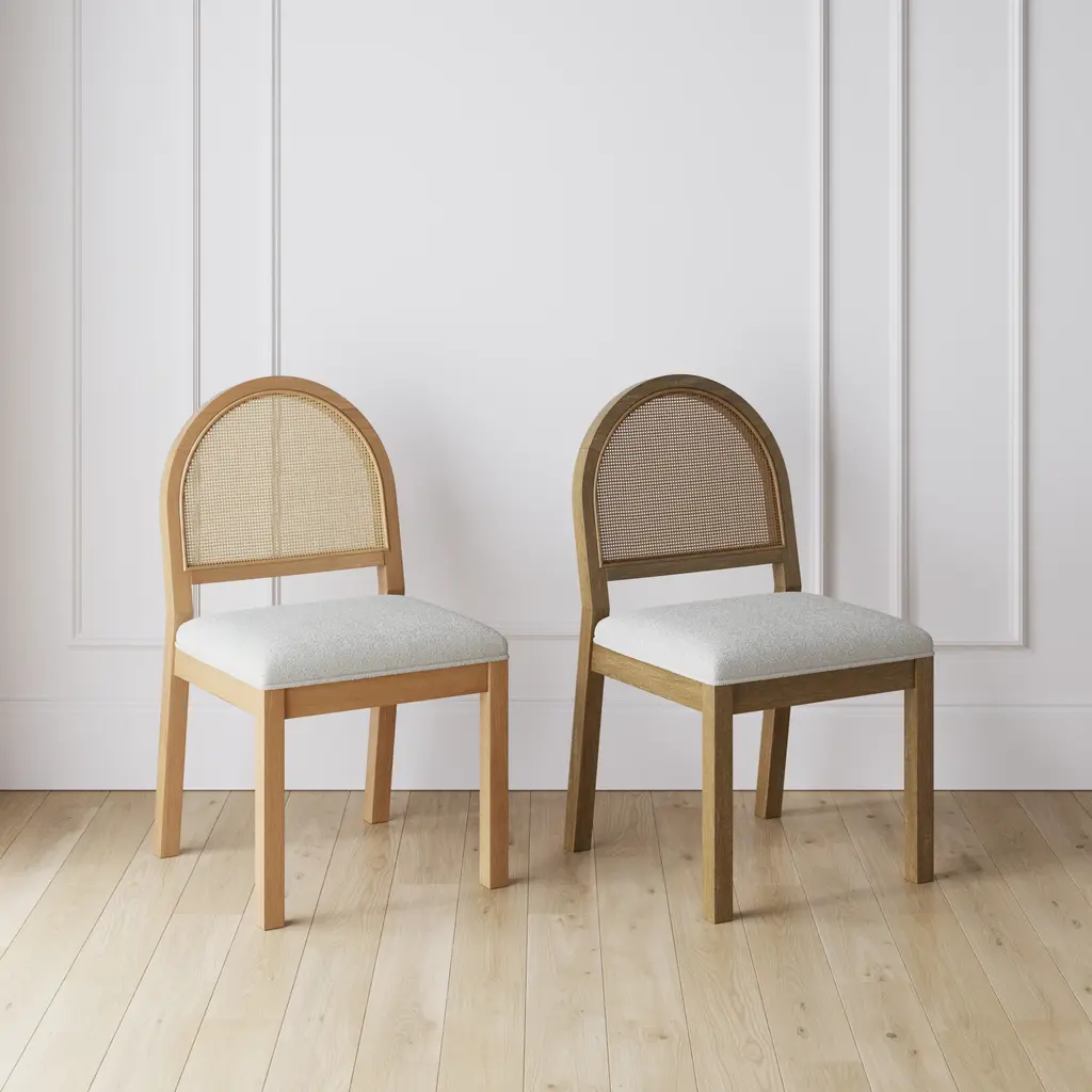 Creating the kitchen or dining room of your dreams doesn't require Michelin star chef skills! Enter the Bailey dining chair – with its graceful curved silhouette crafted from woven natural cane, and a warm pine finish frame paired with a textured linen weave seat. With its generously padded cushion, you can grab your favorite beverage and settle in for hours. This versatile mixed-material dining chair effortlessly complements various settings, adding a touch of cozy warmth and comfort to your kitchen or dining room spaces!