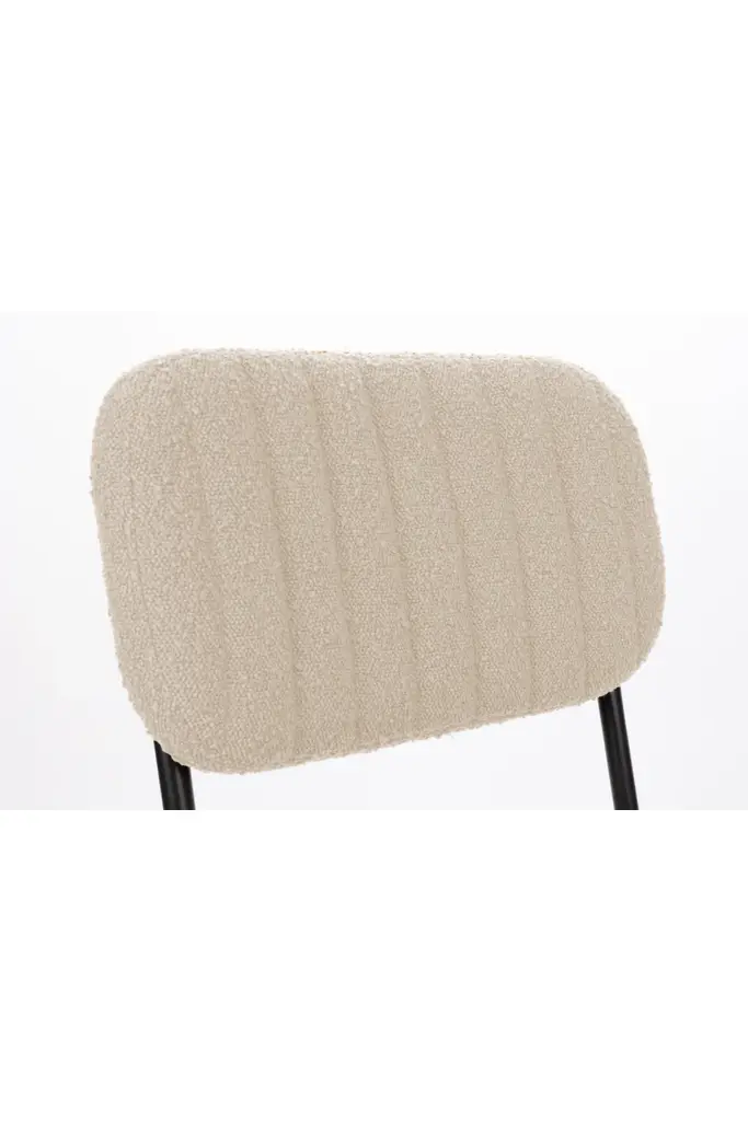 Transform your dining space with DF Jake Dining Chair, where modern design and coziness unite in perfect balance. Upholstered in soft fabric, it rests on a sturdy black metal frame. It features a separate seat and backrest, both adorned with a subtle channel for added style and comfort. This minimalist seating solution offers a tactile and comfortable experience.