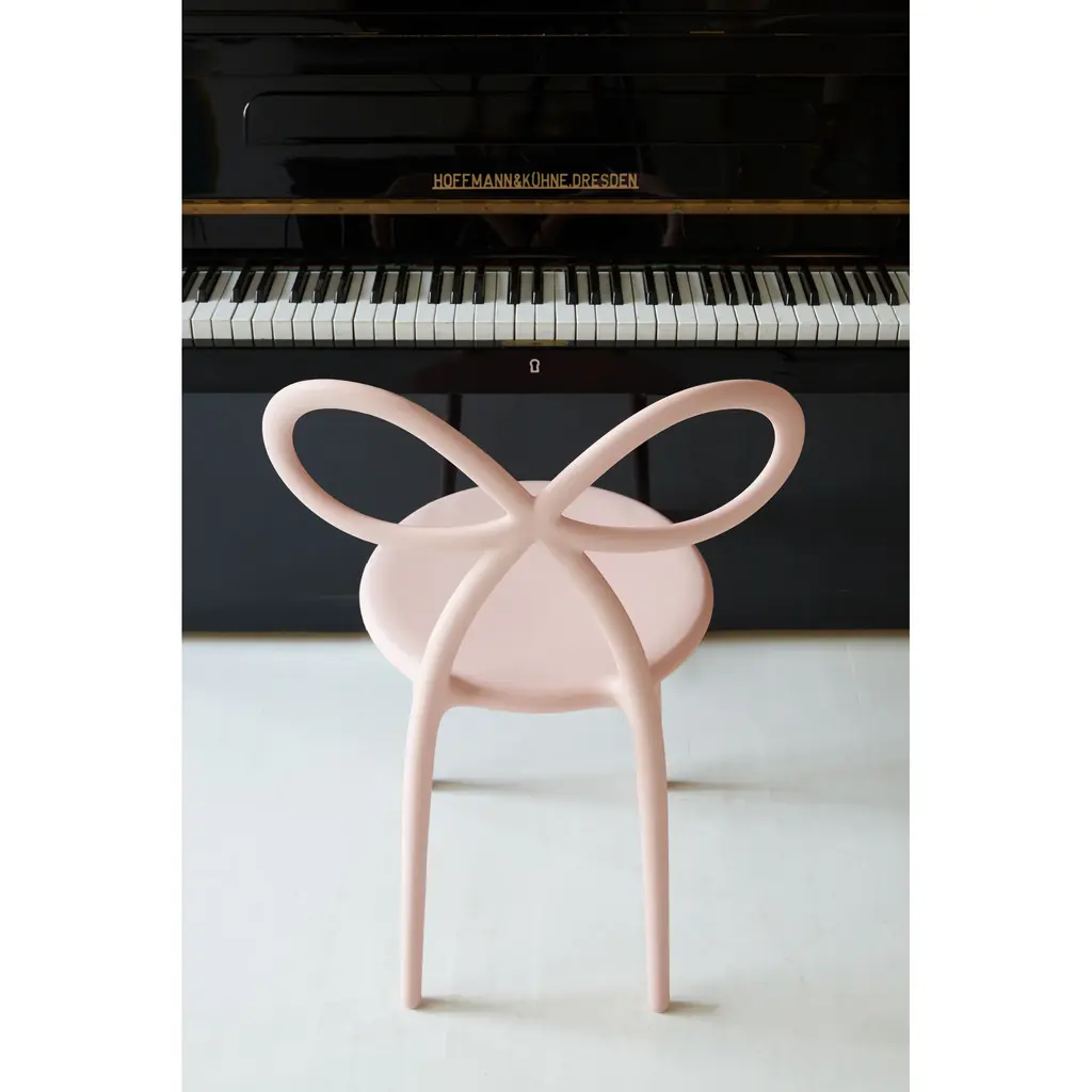 Introducing the Bow Design Dining Chair by Qeeboo, designed with a feminine touch and adorned with a ribbon backrest. Featuring soft, essential lines, this iconic chair adds a romantic touch to any space. Choose from three elegant colors - pink, white, or black. Elevate your dining experience with the Ribbon Chair.