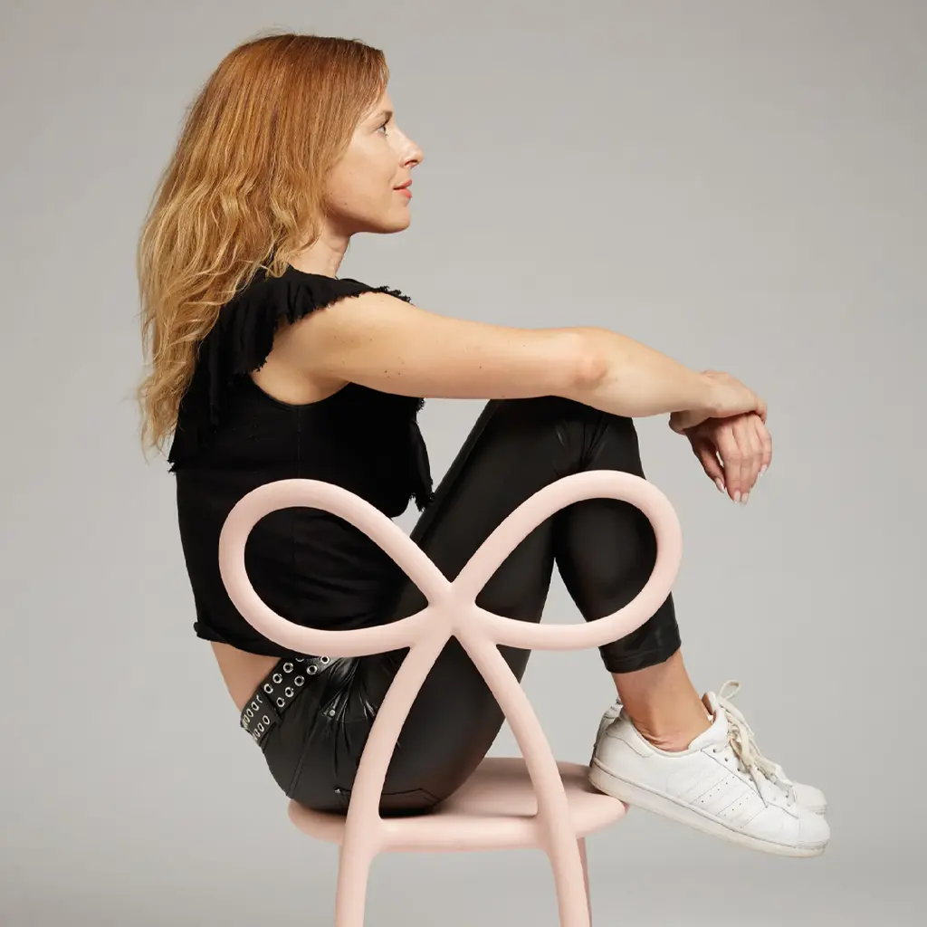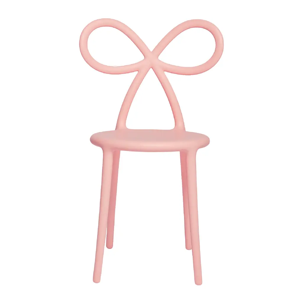Introducing the Bow Design Dining Chair by Qeeboo, designed with a feminine touch and adorned with a ribbon backrest. Featuring soft, essential lines, this iconic chair adds a romantic touch to any space. Choose from three elegant colors - pink, white, or black. Elevate your dining experience with the Ribbon Chair.