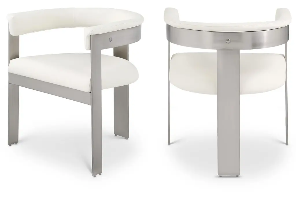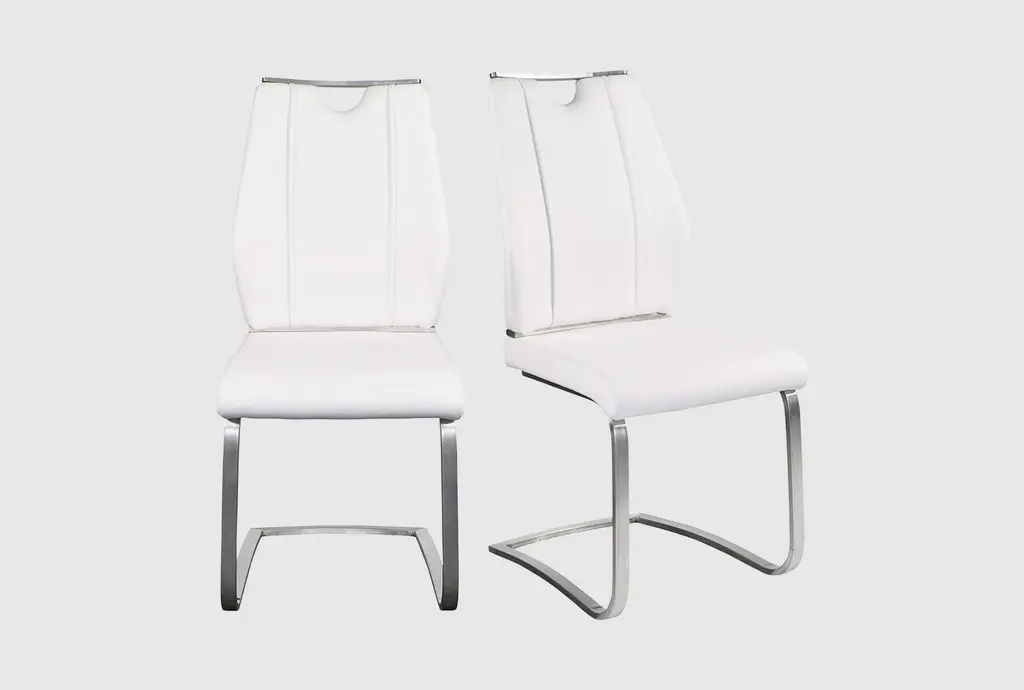 A little extra seating never looked so interesting. The Bravo Side Chair from Armen Living is a floating work of art that your guests can sit on. Featuring a durable reinforced contoured stainless steel base, a modern minimalist silhouette, and a comfortable foam interior upholstered in white or coffee leatherette, a distinct u-shaped slope on the back gives the Bravo Side Chair a final defining detail.