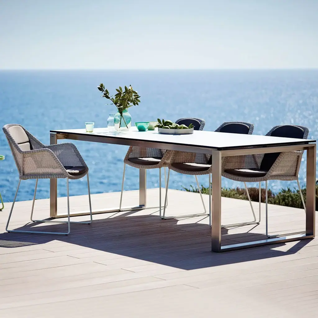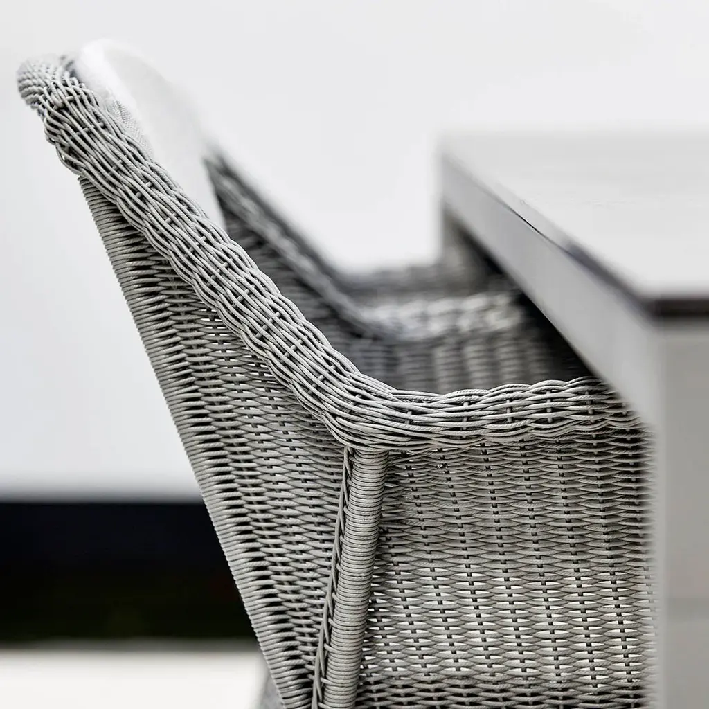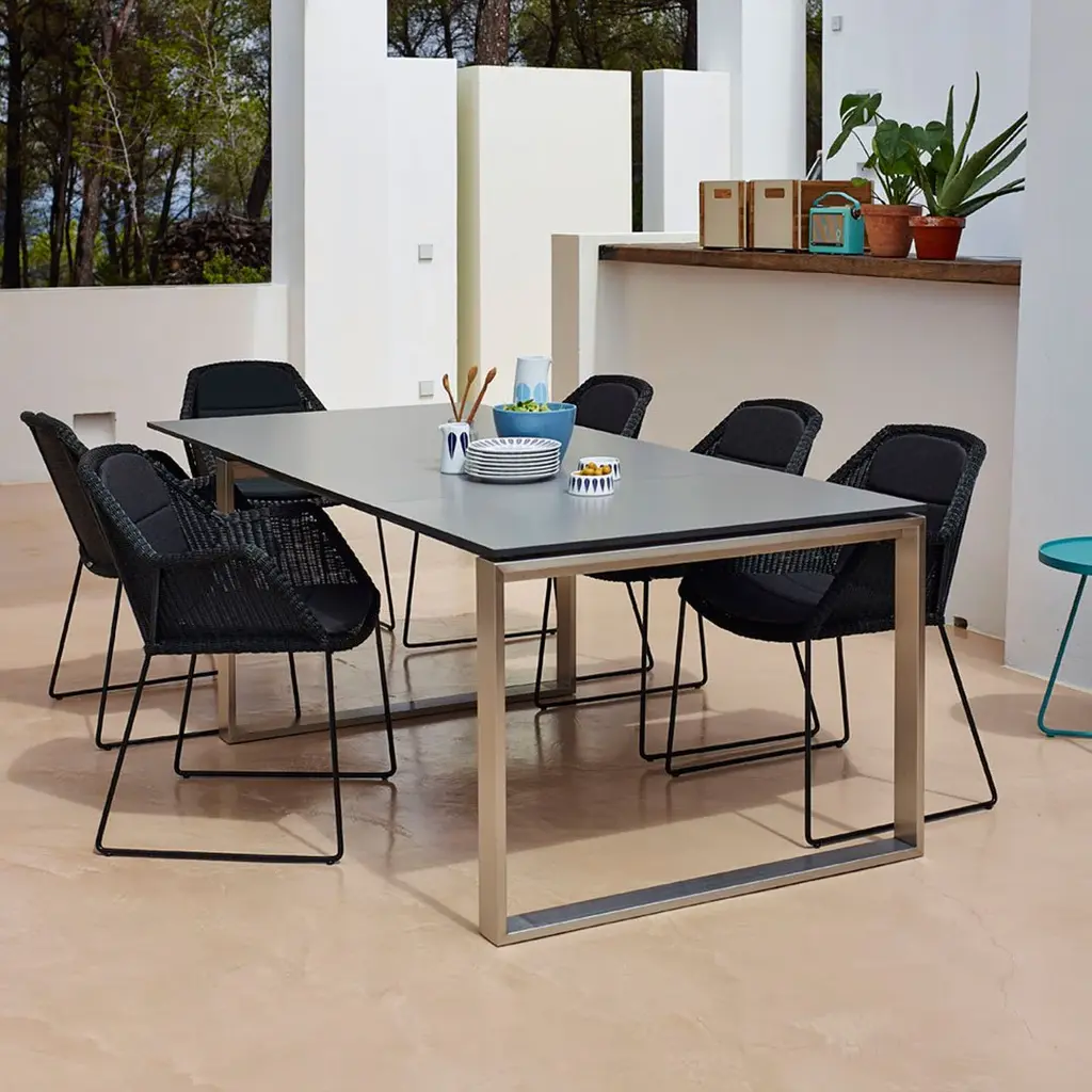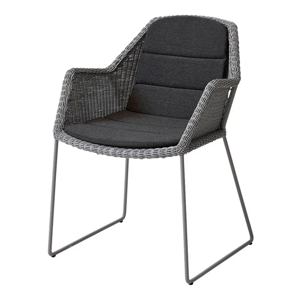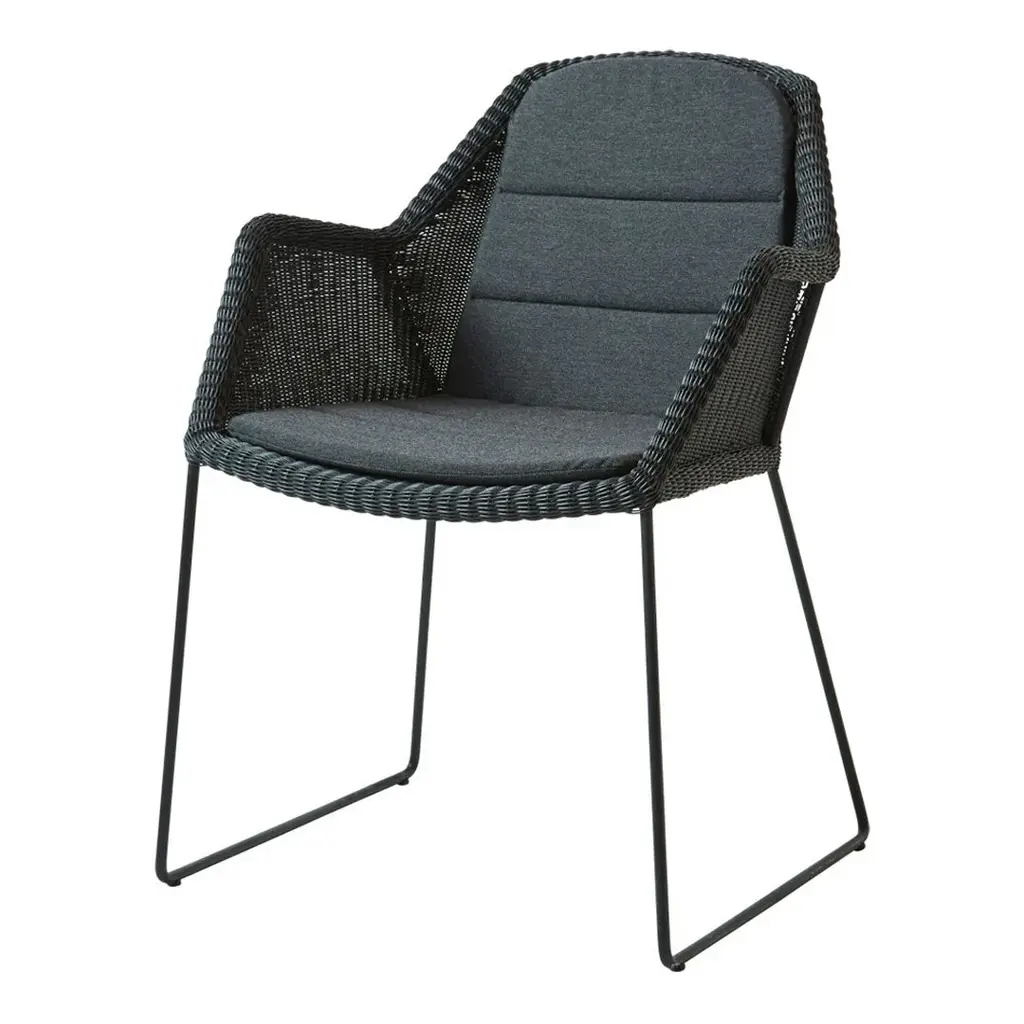 The Breeze dining chair is designed by the dynamic Danish duo Strand + Hvass. The Outdoor chair combines beautiful and elegant lines with great comfort and is maintenance free. The angled legs, as well as the meticulously woven intricate lines all contribute to the end product; a chair that not only looks great, but also doubles as an incredibly comfortable dining chair. Combine the luxurious Breeze garden chair with a minimalistic Pure table, a modern Edge table, or any of the Share tables to create a stylish, yet comfortable, modern dining area. Note: Chair and cushion sold separately.
